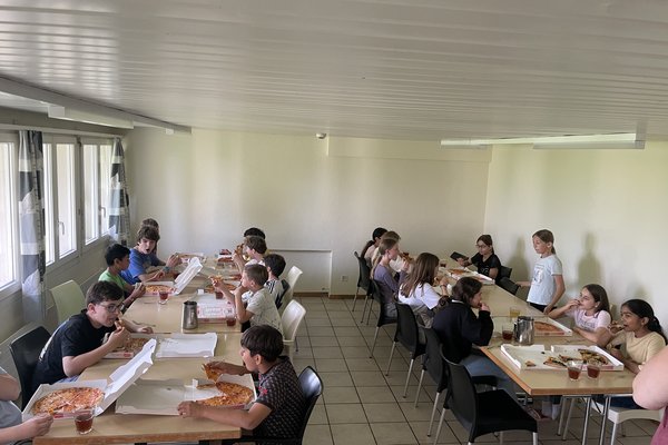 Heute ging die Lagerwoche zu Ende und alle hatten eine Menge Spass. Nach dem Frühstück räumten alle ihr Zimmer auf, packten ihren Koffer, halfen beim Putzen des Hauses und genossen den letzten Tag im Lagerhaus. Immer wieder lachten die Leiter und die Kinder. Am Mittag fuhren wir alle mit dem Bus und dem Zug zurück nach Hause.