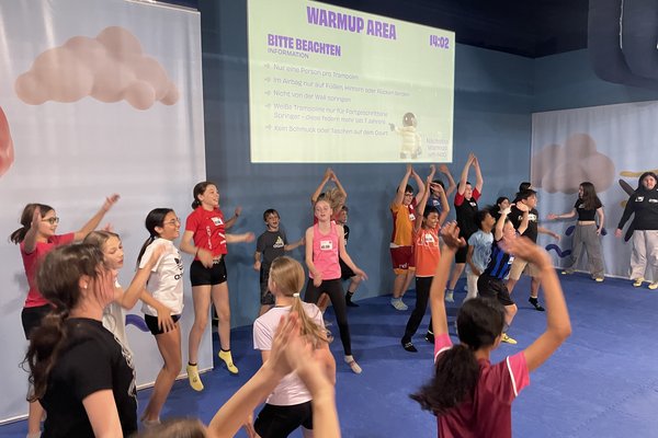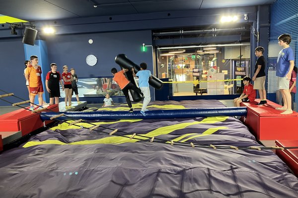 Der Tag begann mit Musik, damit wir aufwachten. Als wir aufstanden, war es ziemlich kalt im Lagerhaus und auch draussen. Schliesslich gingen wir nach unten und frühstückten Müesli, Brot und Milch. Dann hatten wir ungefähr 2,5 Stunden Freizeit. Ein paar spielten draussen, einige drinnen Werwolf und andere rasten im Haus herum. Um 11:00 brachen wir Richtung Flip Lab auf. Das ist eine riesige Trampolinhalle. Es hat im Flip Lab viel Spass gemacht!
