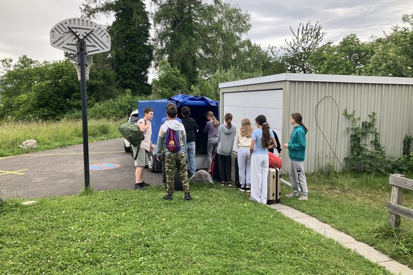 Wir sind um 8:45 mit dem Bus nach Baden und von dort mit dem Zug nach Lenzburg gefahren. Um ca. 10:30 sind wir dort angekommen und musste 30 Minunten lang auf den Bus warten, der uns nach Seengen brachte. Als wir in Seengen bei der Station Brestenberg ankamen, mussten wir noch etwa 1 km bergauf laufen bis zu unserem Lagerhaus. Danach holten wir unsere Koffer und erkundeten das Haus und den Platz darum herum.