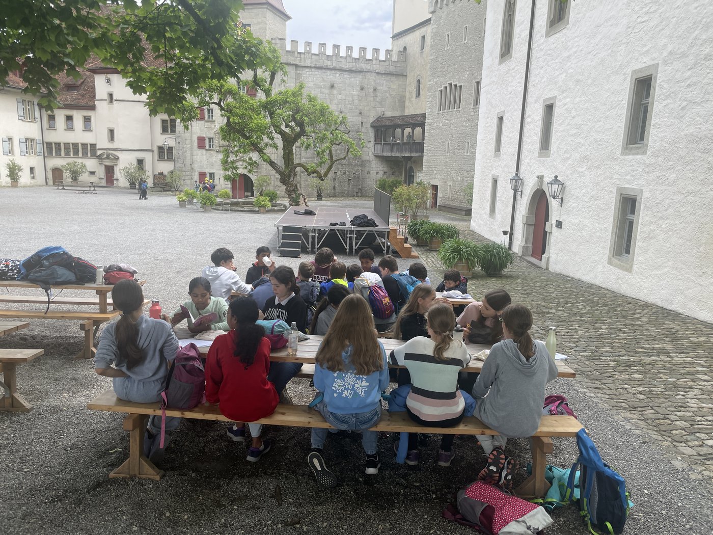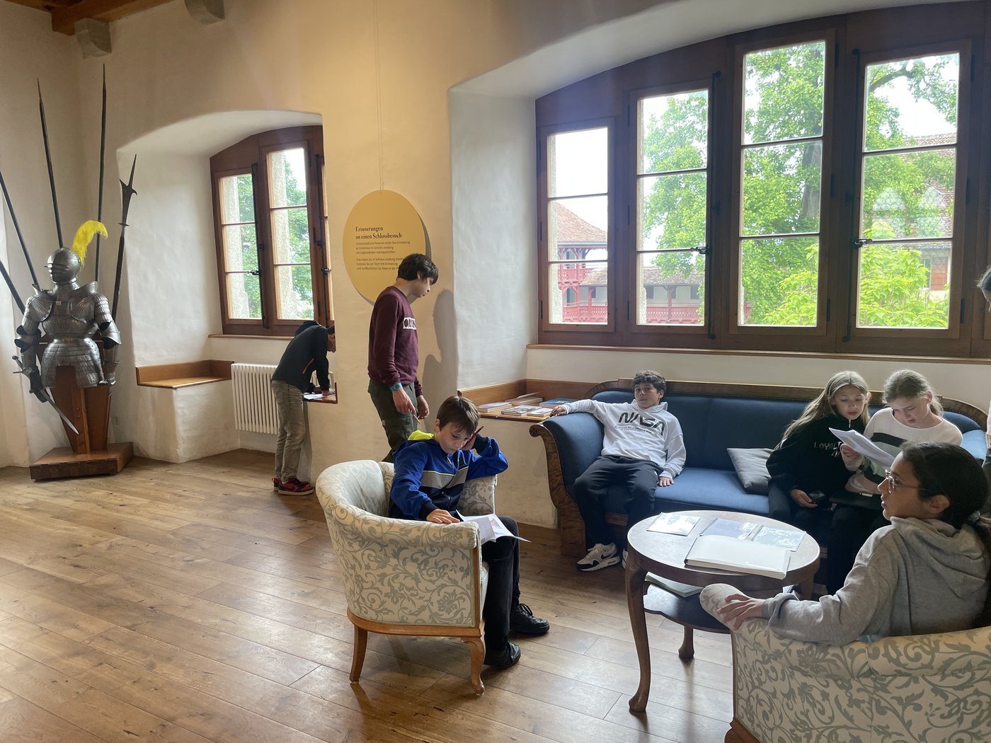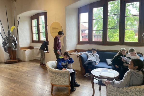 Heute waren wir den ganzen Tag in Lenzburg. Am Morgen gingen wir ins Schloss Lenzburg. Dort erkundeten wir in 2 Gruppen das Schloss und lösten in kleineren Gruppen verschiedene Aufträge zu Fotoausschnitten. Zum Beispiel mussten wir den Brunnen finden und hören, wie lange es dauert, bis das Wasser den Grund erreicht. Es war spannend und manchmal auch ein bisschen schwierig, aber wir hatten viel Spass.