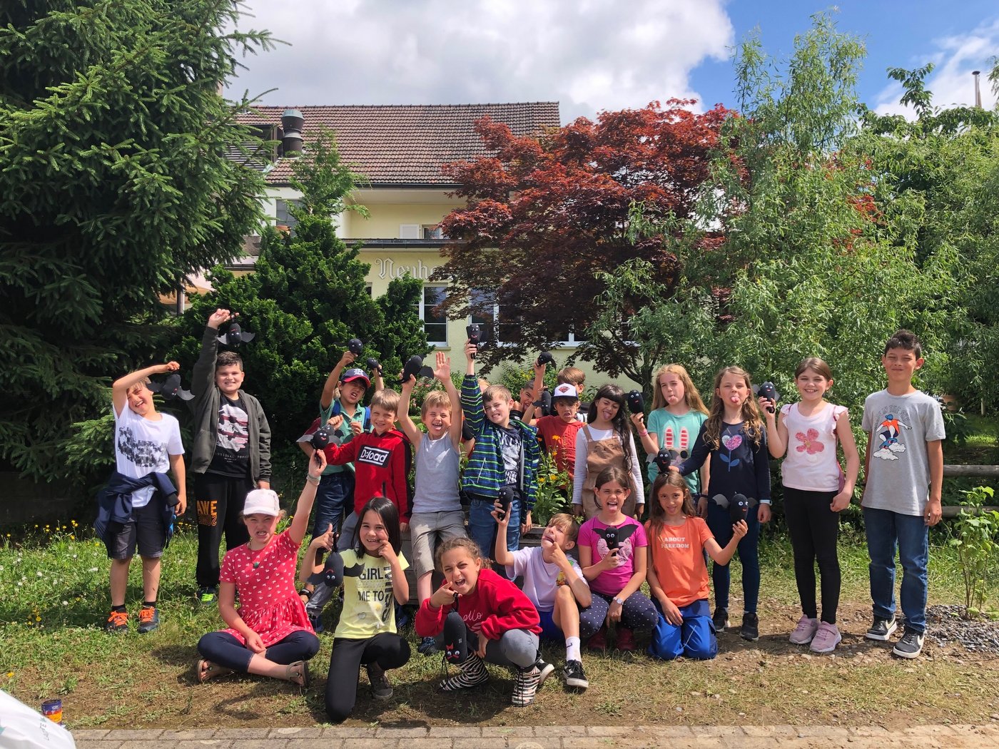 Zarte Pflänzchen, vorgängig von Hand gezogen, wurden in Hochbeete gepflanzt, Büchsen als Erinnerung bepflanzt und nach Hause genommen. Die verblassten Böckli wurden mit kräftigen Farben neu gestrichen. Viel Spass hatten die Kinder bei den Fledermausspielen auf dem Pausenplatz und auf dem Actionbound mit den IPads. In der Aula war eine Kreativwerkstatt aufgebaut, wo alle Klassen zum Thema Fledermaus werken und malen konnten. Im Lehrerzimmer roch es nach Cup Cakes und gebackenen Zopfteigfledermäusen.