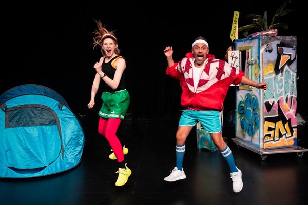 Stella und Paco (gespielt von Teatrolata: Gustavo Nanez und Julia Sewing) begegnen sich im Stück «Camping – Endlich Ferien» mitten in der Pampa, lernen sich kennen und erleben gemeinsam (meist erfundene) Camping- Abenteuer mit Zelt, Schlafsack und viel Kreativität. Auf der Bühne wurde nicht nur viel gespielt, sondern auch musiziert und gemeinsam mit dem Publikum getanzt.