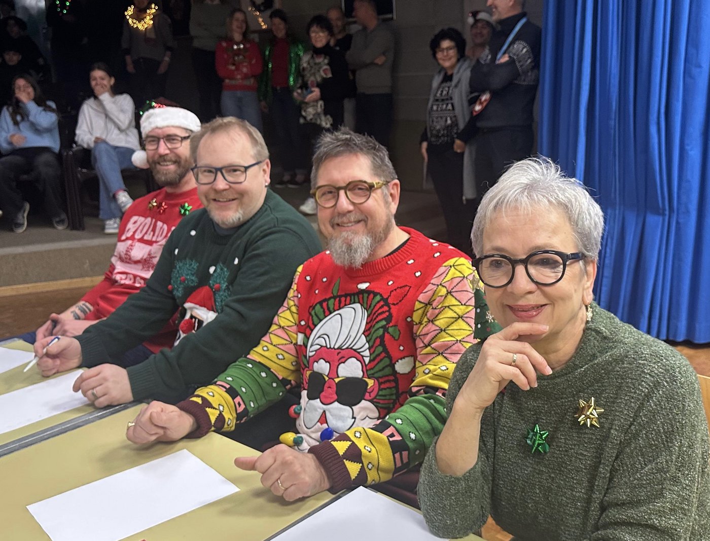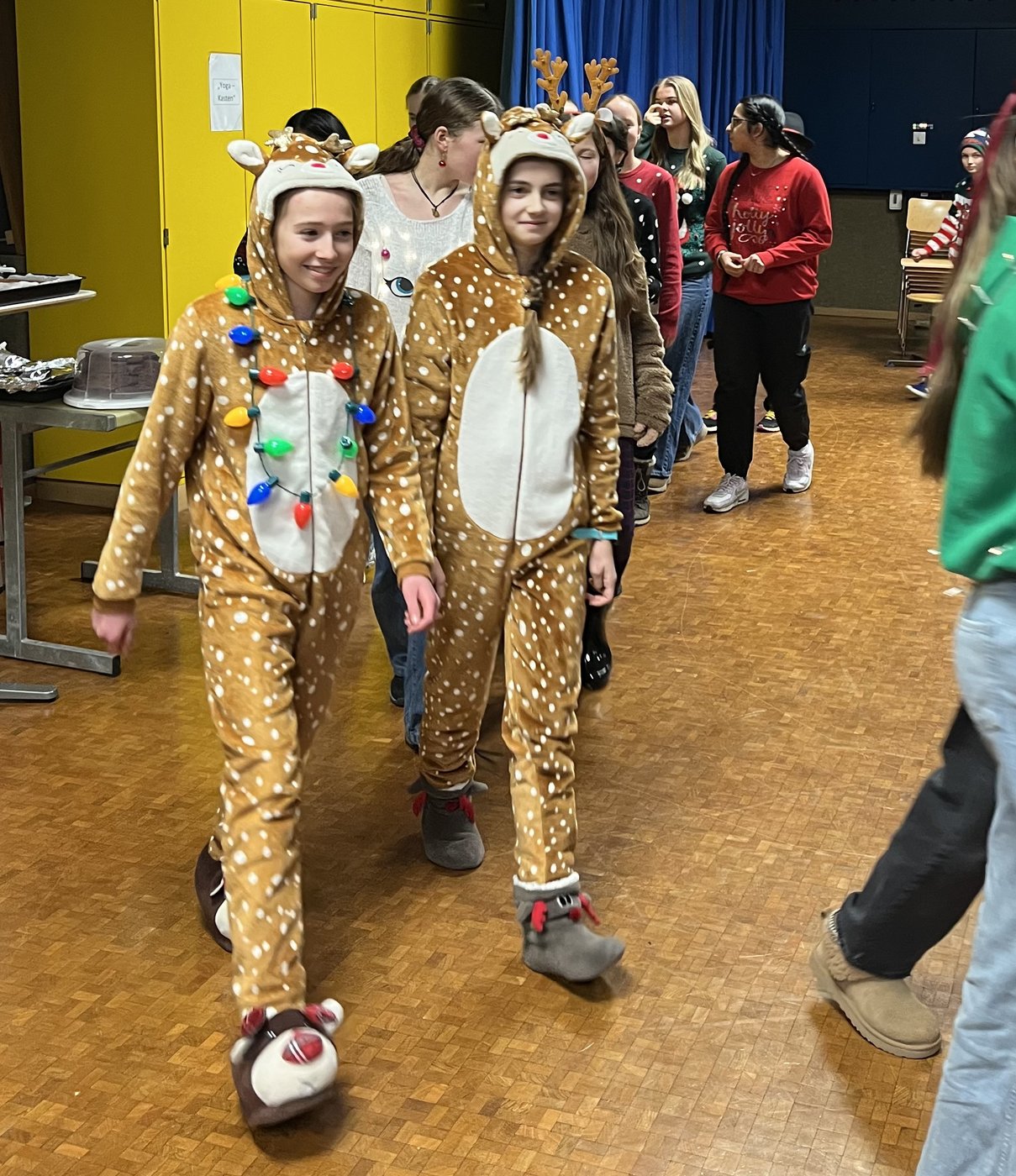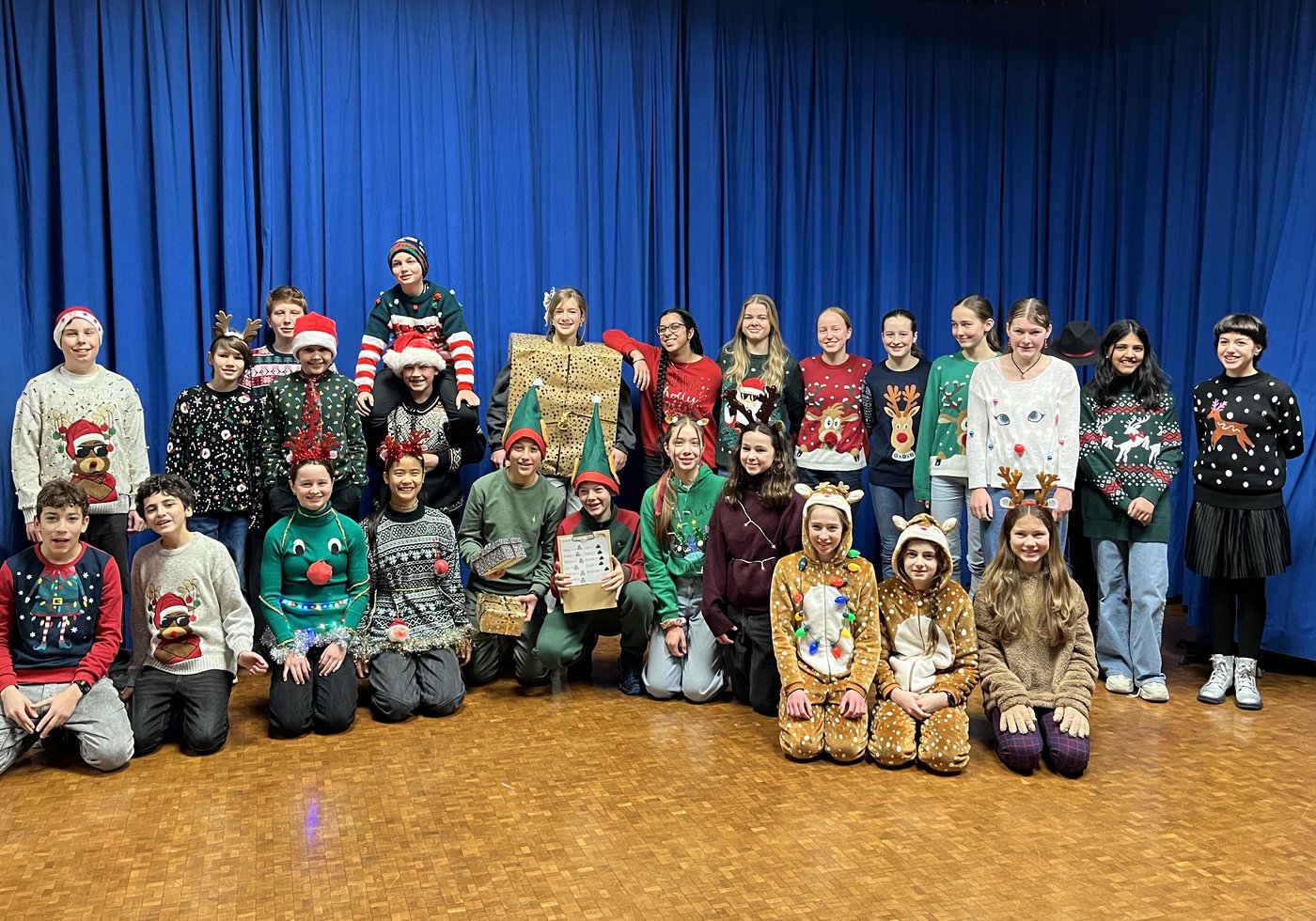 Heute hat sich definitiv Weihnachtsstimmung im OSOS verbreitet und den einen oder anderen ein Lächeln ins Gesicht gezaubert. An unserem diesjährigen Christmas Jumper Day haben wieder zahlreiche Schülerinnen und Schüler mit fantastischen Pulloverkreationen teilgenommen. Die Jury tat sich schwer, doch die 6 Kinogutscheine wurden wohlverdient vergeben. Anschliessend gab es für alle Teilnehmerinnen und Teilnehmer ein feines Stück Lebkuchen.