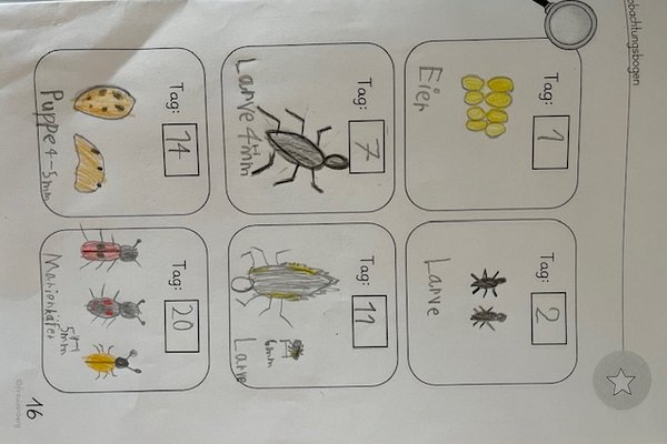 Seit den Frühlingsferien hat sich die P1c im Fach Natur, Mensch, Gesellschaft ausgiebig mit dem Thema Marienkäfer beschäftigt. Wie sehen sie aus, wo leben sie, was ist ihre Nahrung und wer sind ihre Feinde? Mit diesen Fragen beschäftigten sich die Kinder. Dabei sind nicht nur Marienkäfer aus Salzteig gebastelt worden, sondern auch echte ins Schulzimmer eingezogen. Diese konnten bei der Entwicklung vom Ei bis zum geschlüpften Marienkäfer beobachtet werden. Am Ende wurden sie dann gemeinsam auf der Wiese frei gelassen.