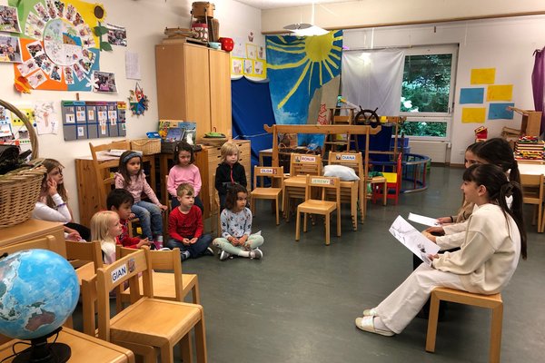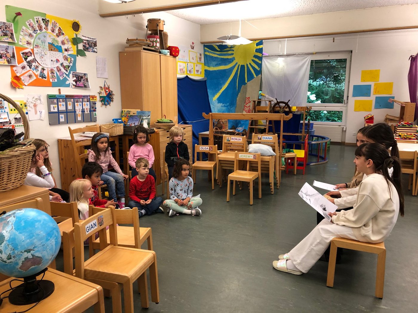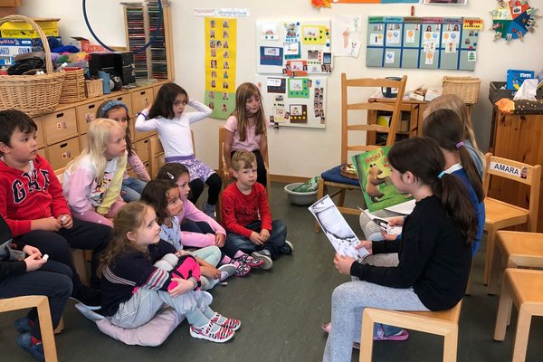 Der Schweizer Vorlesetag am 22. Mai 2024 war Anlass für ein kleines stufenübergreifendes Projekt. Schülerinnen und Schüler der 3. Klasse in Kirchdorf lasen den Kindergartenkindern aus Büchern vor.