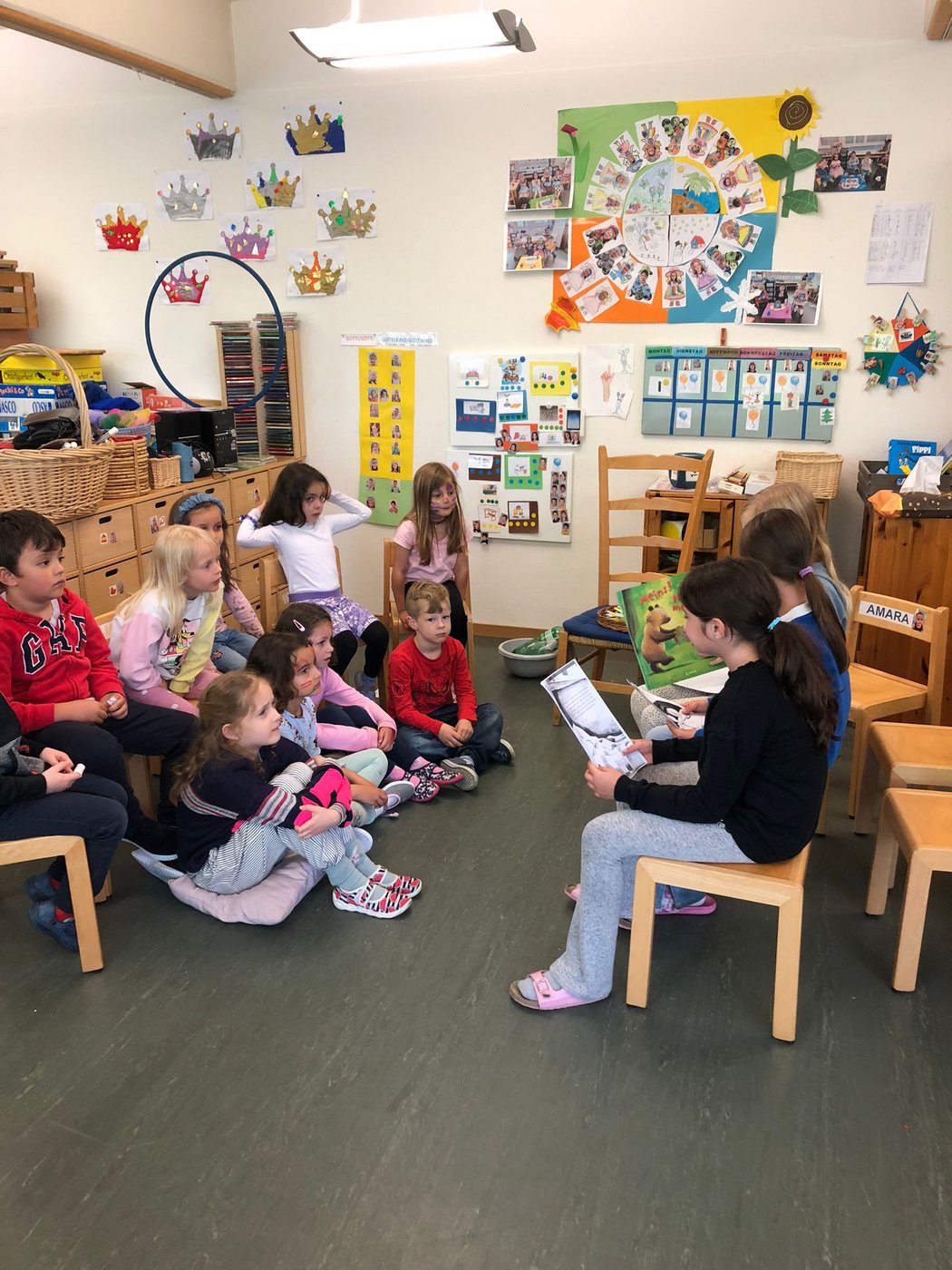 Am Vorlesetag lauschten die Kindergartenkinder dann gespannt den Geschichten und verfolgten mit grossen Augen die gezeigten Bilder.