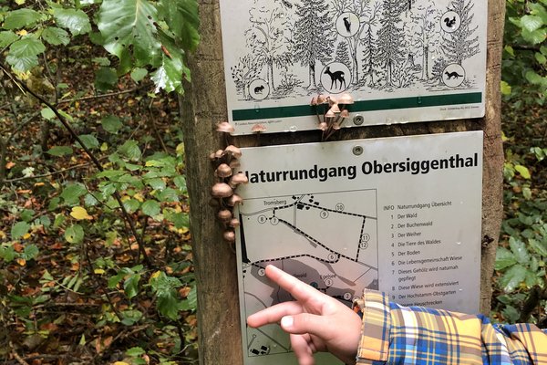 Zusammen entdecken wir Buchstaben an Baumstämmen, hören Tierlaute und fragen uns, wer oder was das Rascheln im Unterholz wohl verursacht hat.