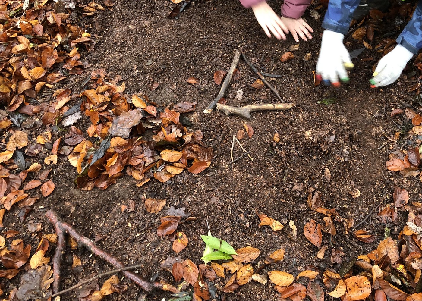 Ein Beispiel aus der Mathematik ist ausserdem das Thema «Formen». Zuerst lernen die Schülerinnen und Schüler verschiedene Formen und deren Eigenschaften kennen und zu benennen (Kreis=rund; Quadrat=vier Ecken und vier gleichlange Seiten). Im Anschluss suchen sie zu zweit oder dritt Material, welches die Natur hergibt und legen die kennengelernten Formen auf dem Waldboden aus.