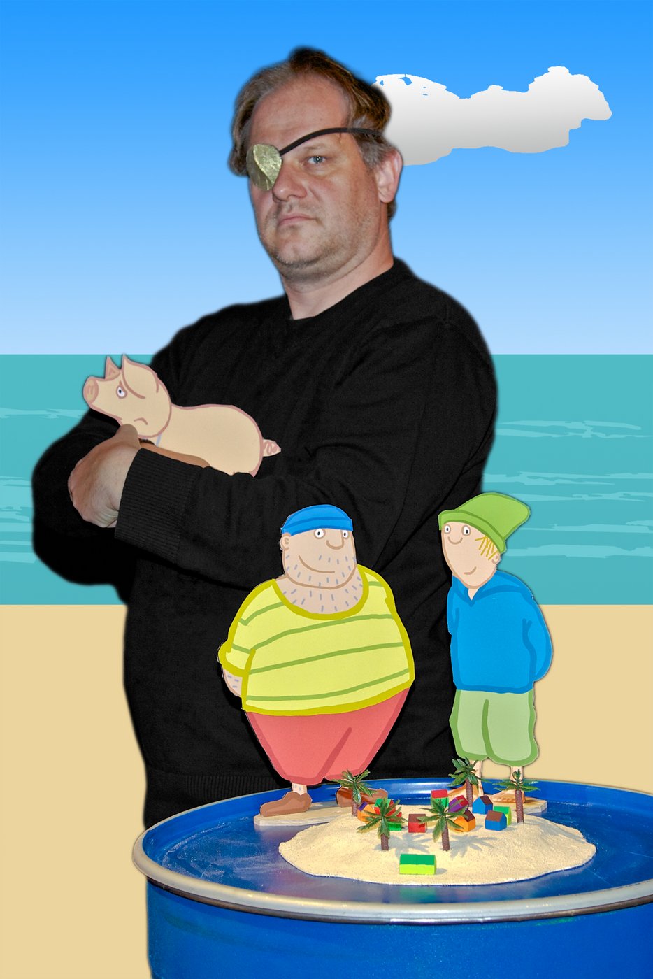 Mit viel künstlerischem Talent spielt Sven Mathiasen die Geschichte des Piratenschweins Jule spannend und kurzweilig mit farbenfrohen Flachfiguren, Bildern und Gesang.