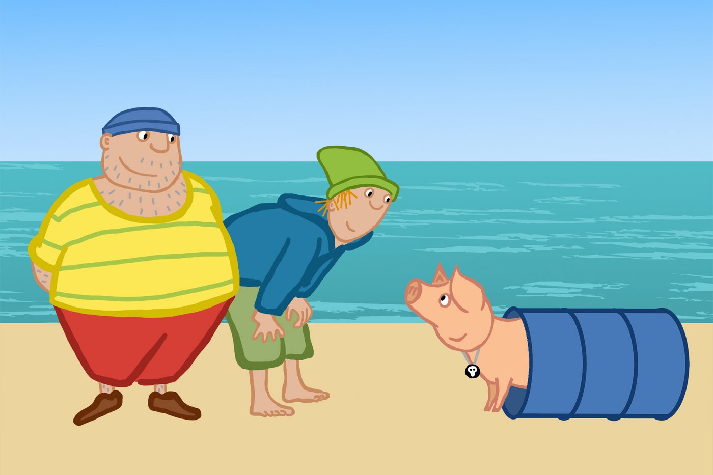Die zwei Freunde unternehmen alles, um ihr geliebtes Schwein aus den Fängen der Piraten zu befreien.