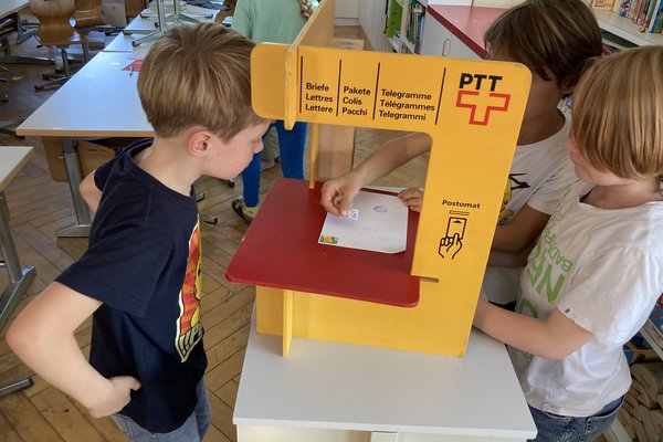 Wir haben gelernt, die eigene Adresse auf Kuverts zu schreiben, Briefe richtig zu frankieren und den Weg des Briefes zu verfolgen. Im Schulzimmer befand sich auch ein Postschalter, bei dem selber geschriebene Briefe an Klassenkameraden aufgegeben werden konnten.