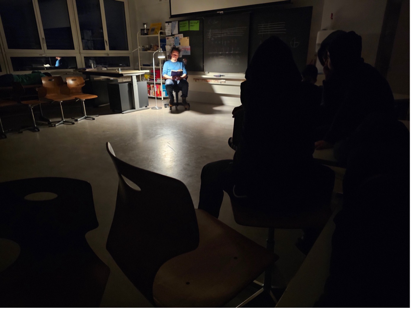In sanftem Licht hörten die Kinder der 4. und 5. Klassen den Erzählerinnen und Erzählern zu, die sie mit magischen Worten in andere Welten führten. Mit jedem Kapitel wurden sie tiefer in die Zauberwelten hineingezogen – in eine Welt voller gestohlener Geheimnisse, mutiger Drachen, ferner Galaxien und unerfüllter Wünsche, die mit einem Hauch Magie vielleicht doch in Erfüllung gehen könnten.