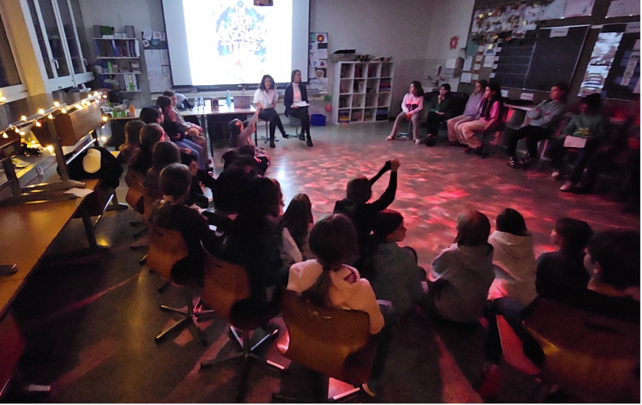 Währenddessen begaben sich die Kinder der 6. Klassen auf eine besondere Reise in eine inspirierende Vorlesung. Die jungen Zuhörerinnen und Zuhörer wurden in die Geheimnisse des Geschichtenerzählens eingeführt und erhielten eine Kostprobe zum Buch "MounTeens" vom Autor Marcel Naas persönlich. Anschliessen gab es für sie noch einen Apéro mit Karaoke und Spielen.