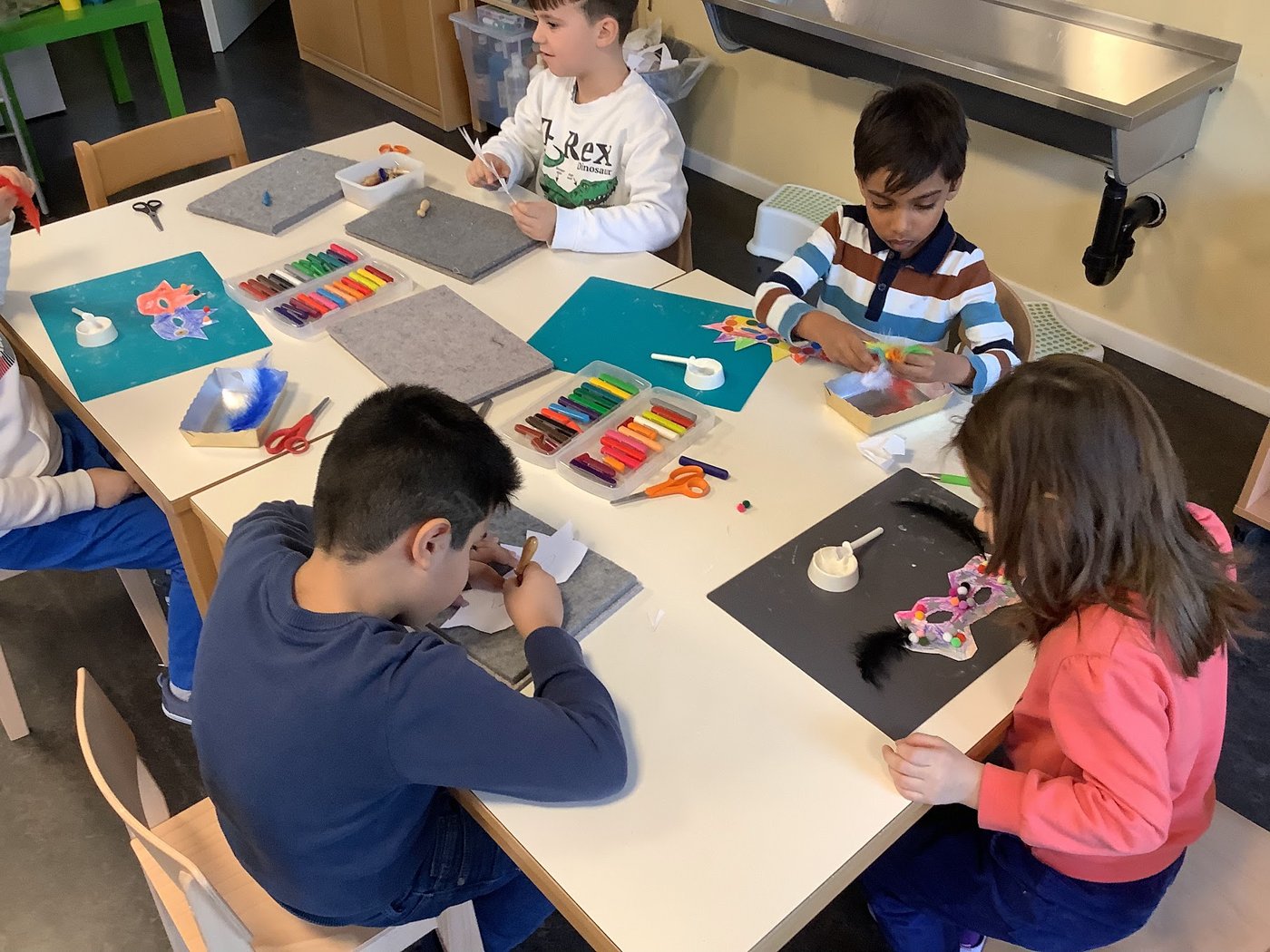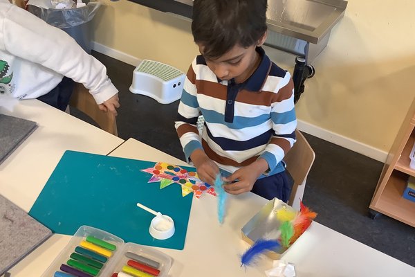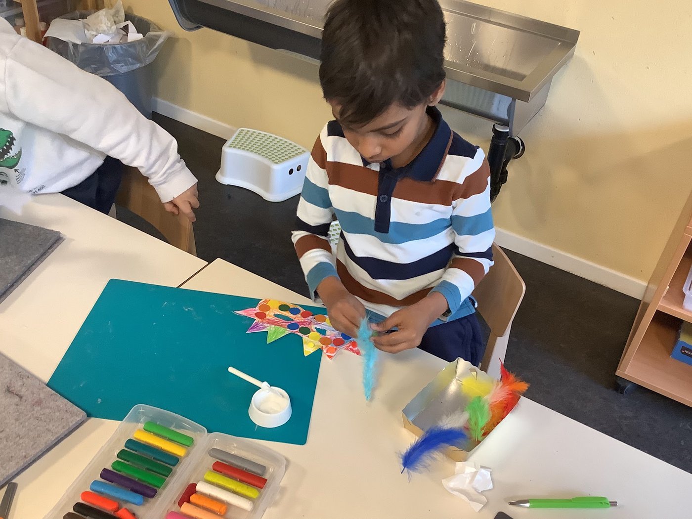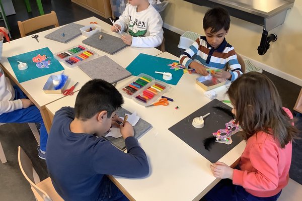 Voller Freude wird im Kindergarten gebastelt: