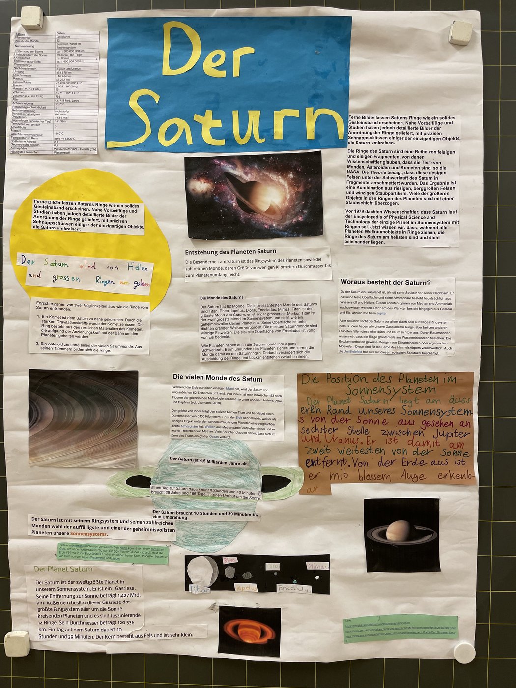 Neben den gemeinsamen Themen "Sonne" und "Mond", bei dem uns das Tellurium aus der Sammlung gute Dienste erwies, durften sich die Schülerinnen und Schüler in Gruppen auf einen Planeten spezialisieren.