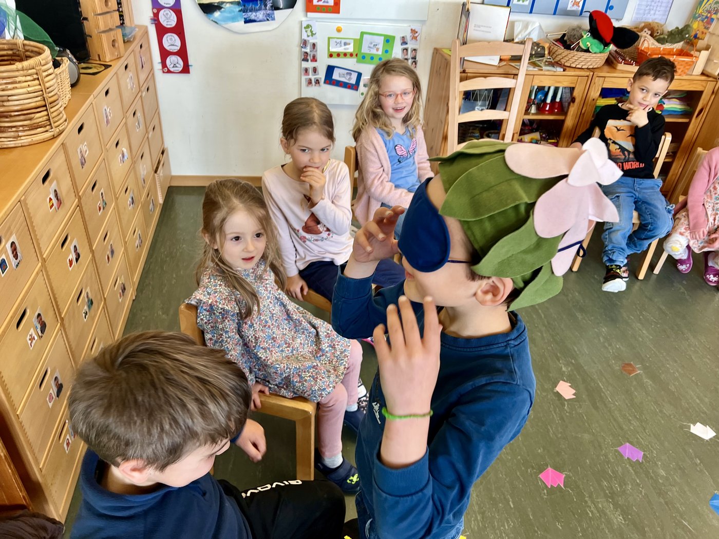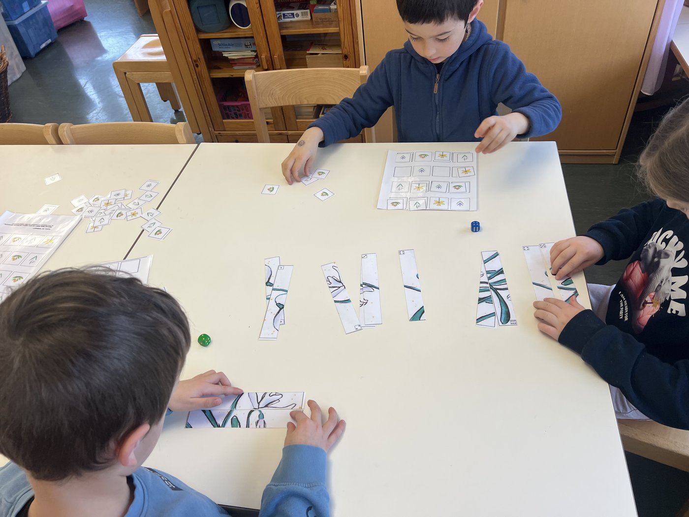 Auf Spaziergängen und im Wald haben wir die Frühblüher entdeckt. Anschliessend im Kindergarten wurden die Entdeckungen auf verschiedene Arten vertieft, wie z.B. gefaltet, ausgemalt, Puzzles und Sudoku und gespielt.