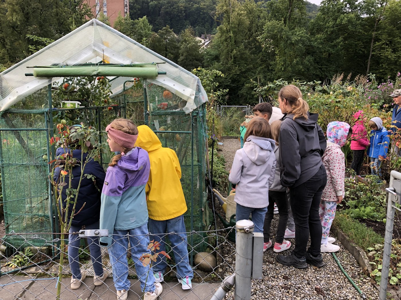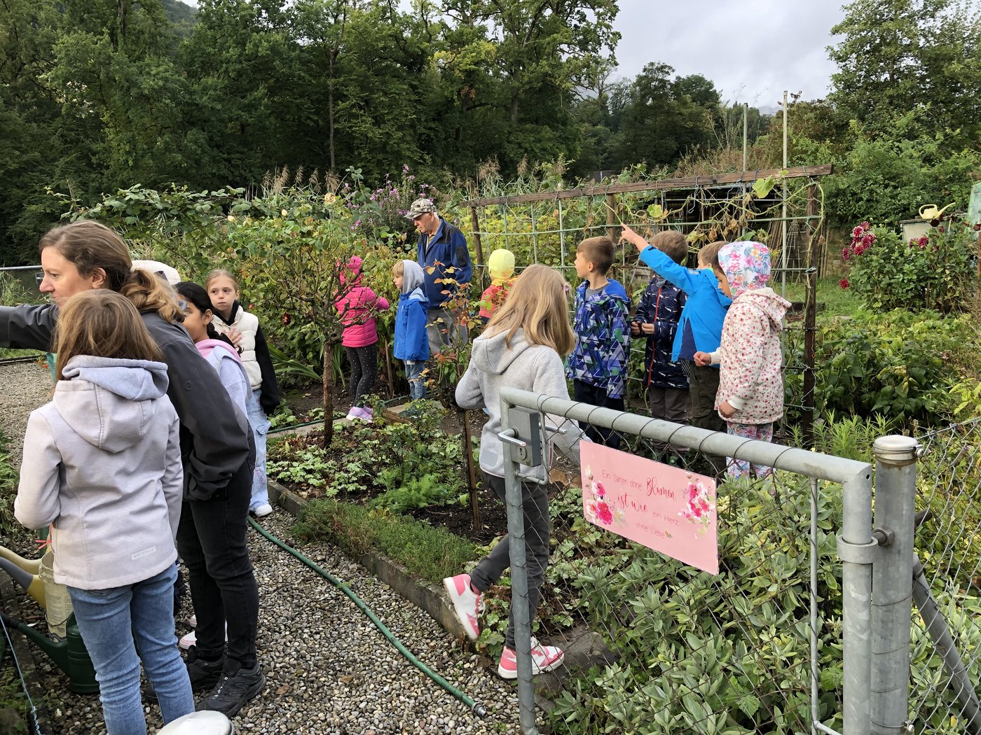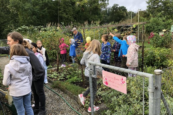 Auf dem Rückweg zum Schulhaus entdeckten die Kinder noch einige weitere Gärten mit Obstbäumen oder Gemüse.