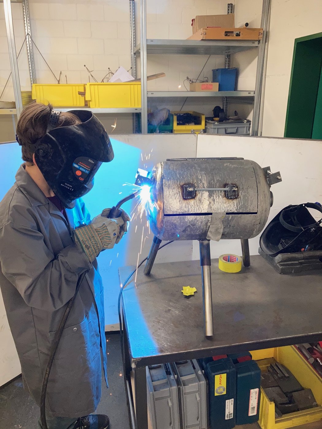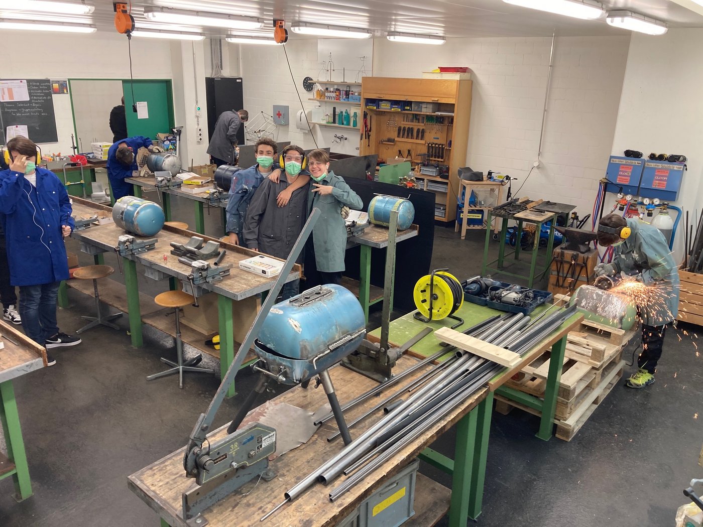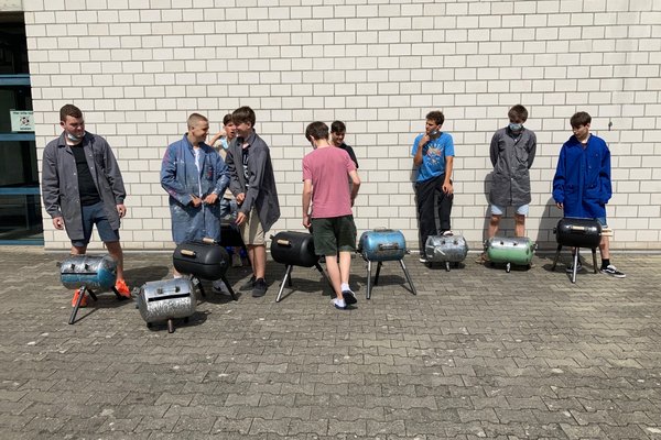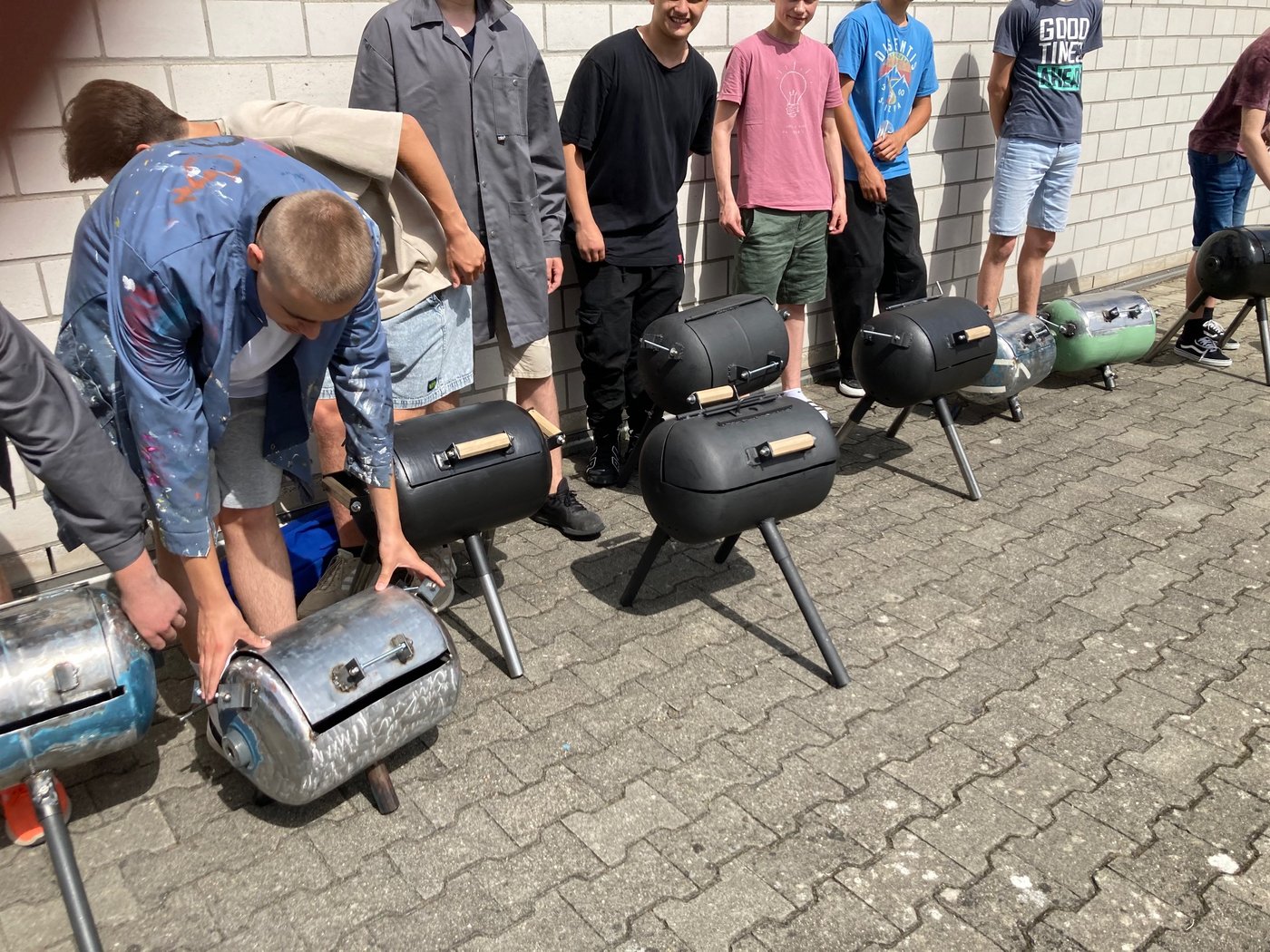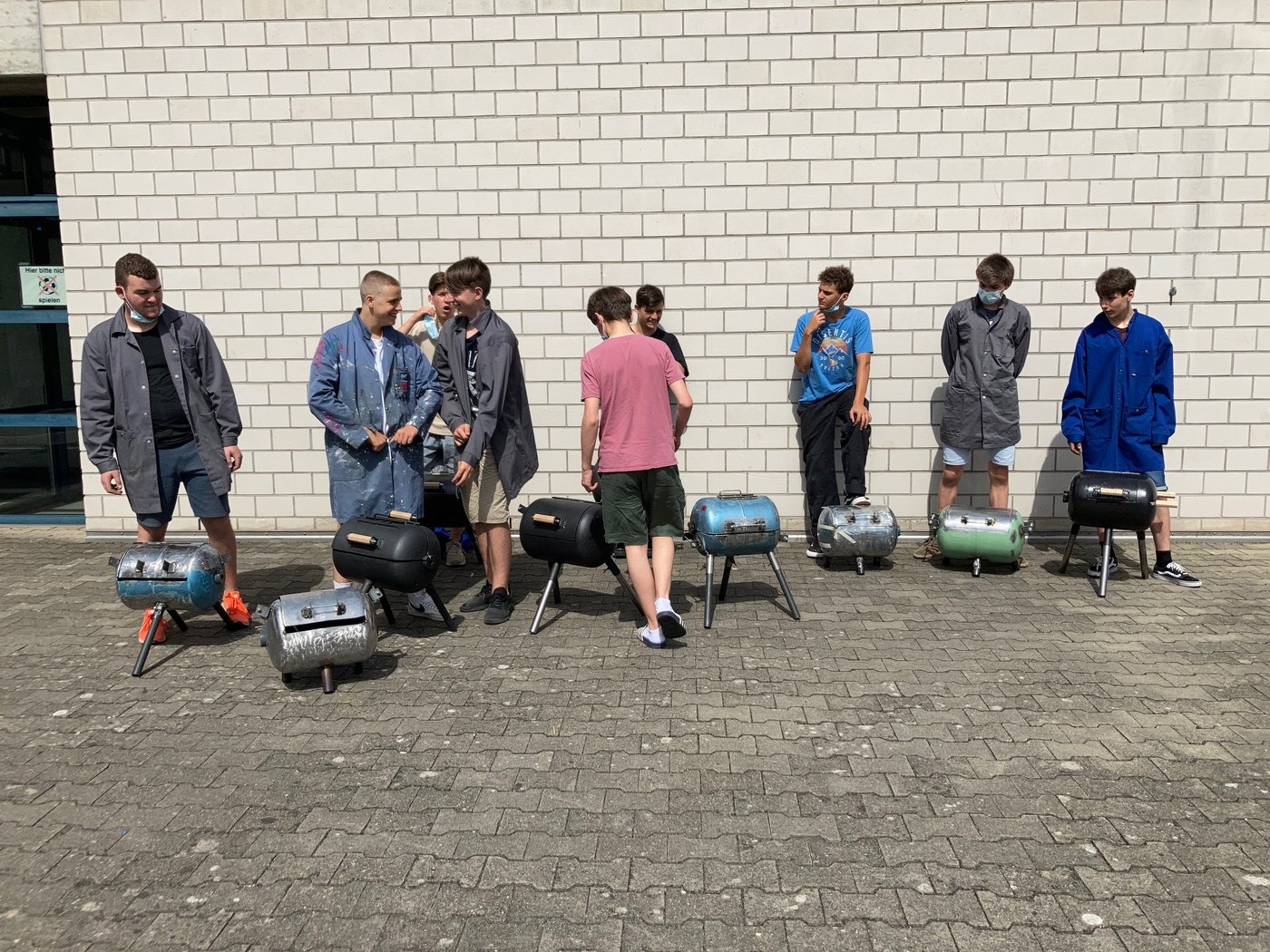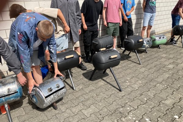 Die Schüler der 3.Oberstufe konnten im Werken Metall aus alten Gasflaschen einen funktionierenden Kohle-Grill bauen.