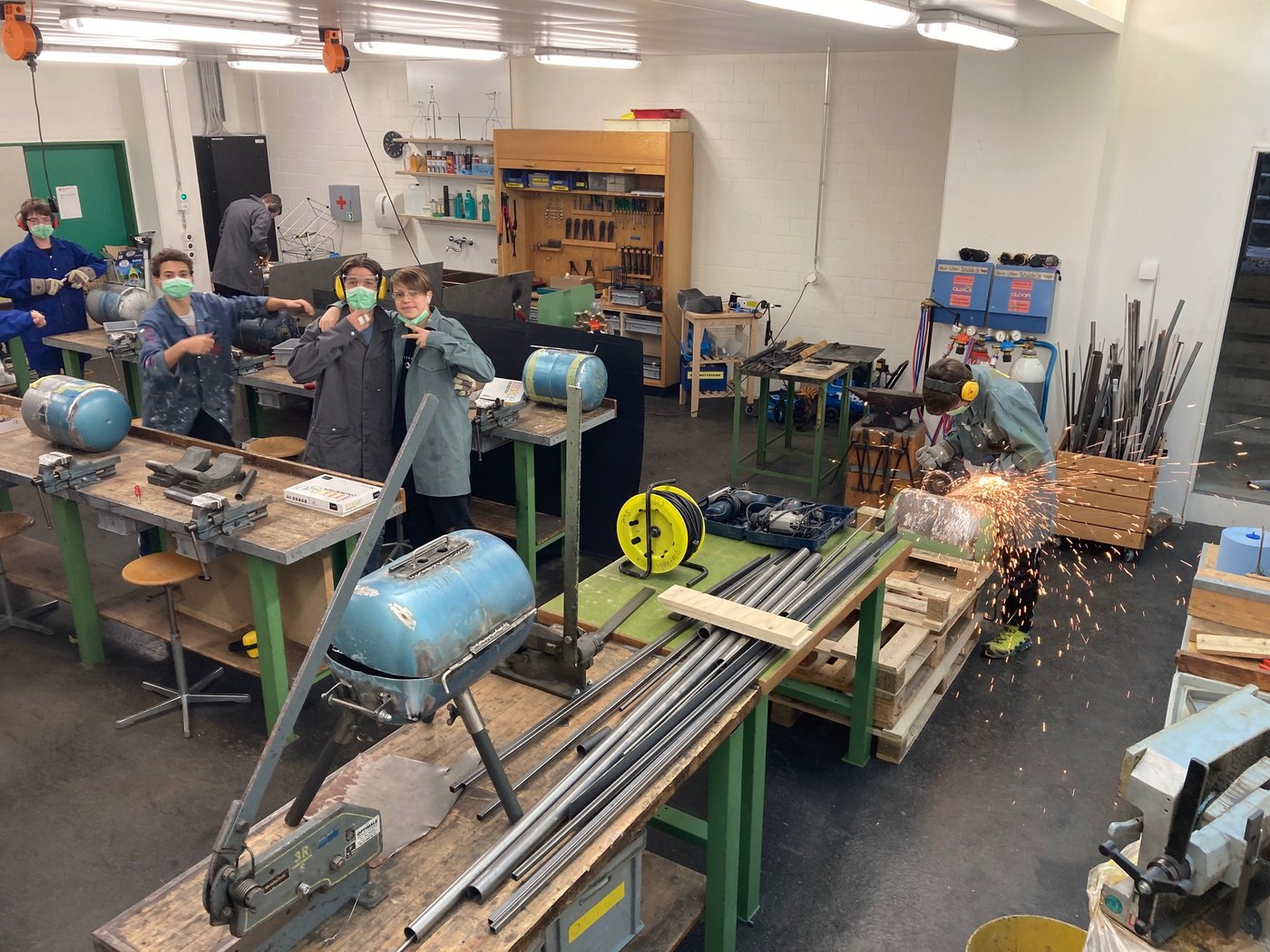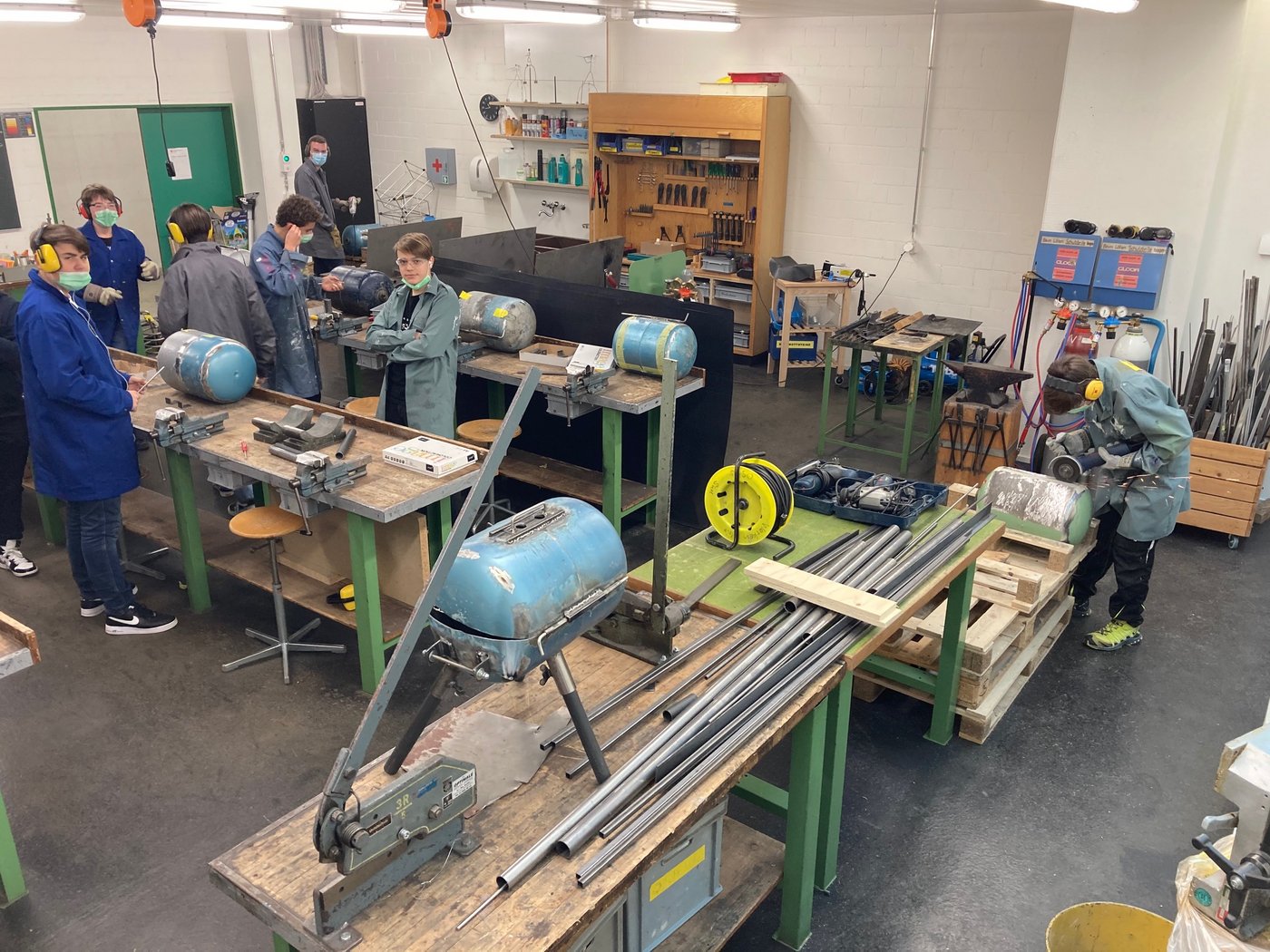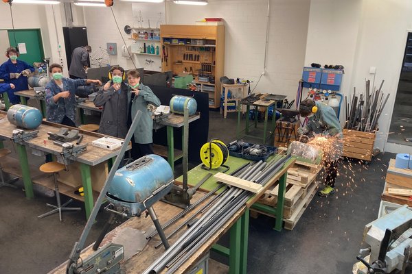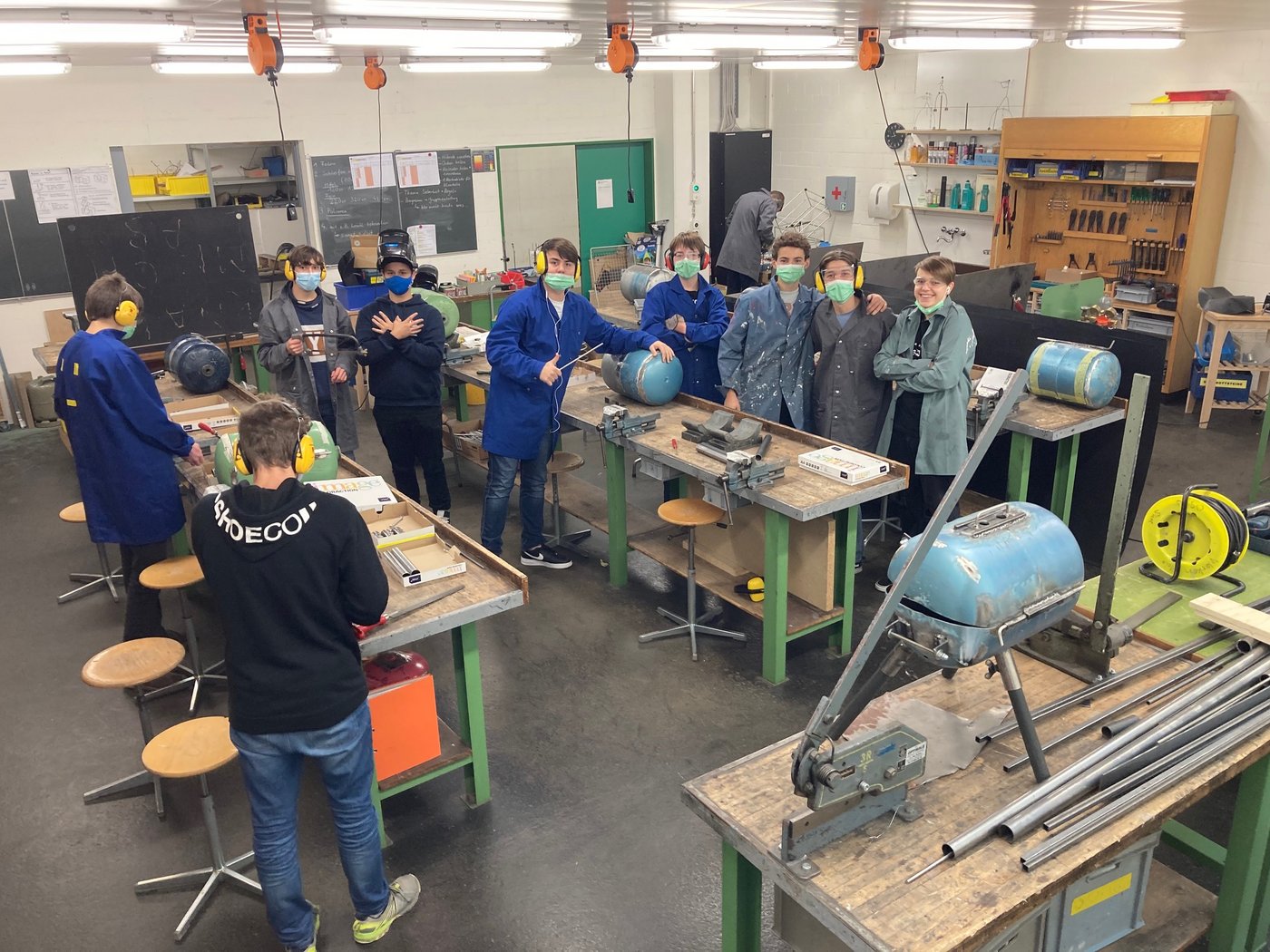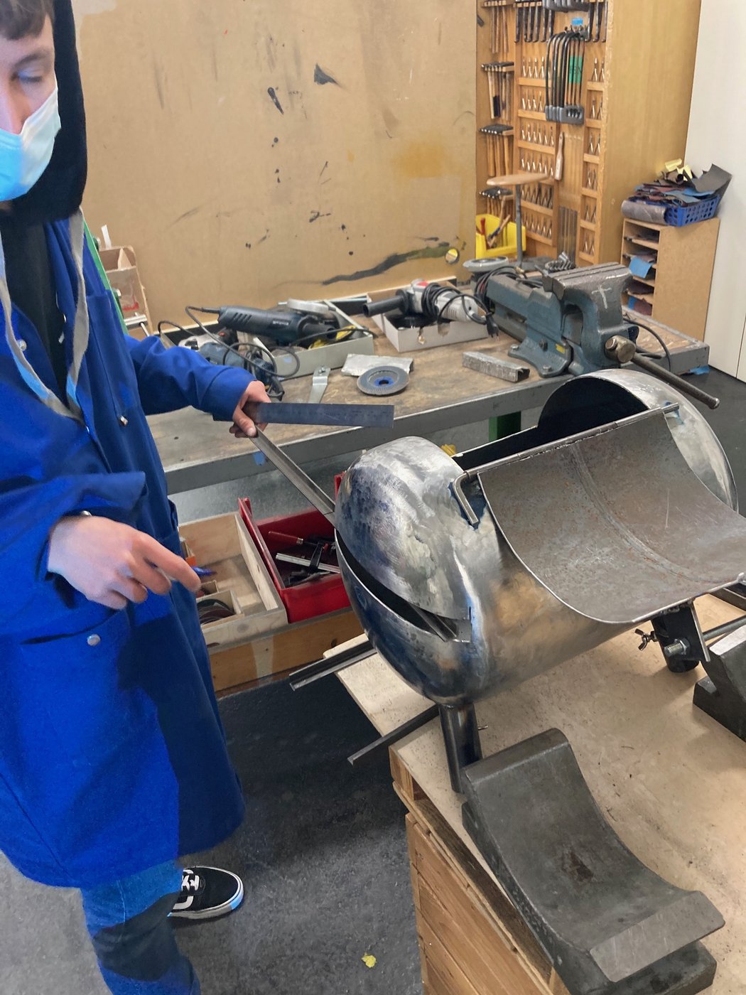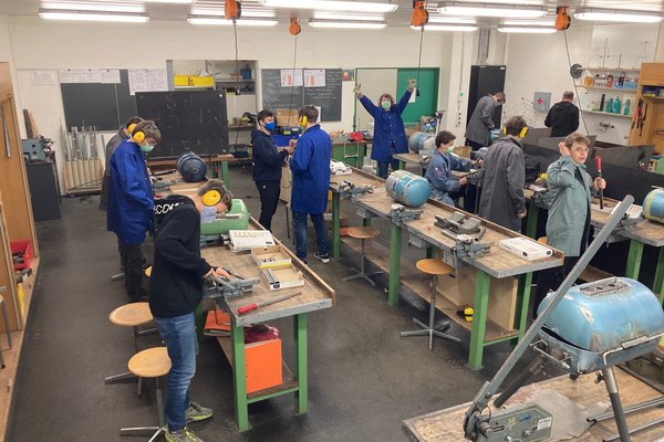 Die Schüler der 3.Oberstufe konnten im Werken Metall aus alten Gasflaschen einen funktionierenden Kohle-Grill bauen.