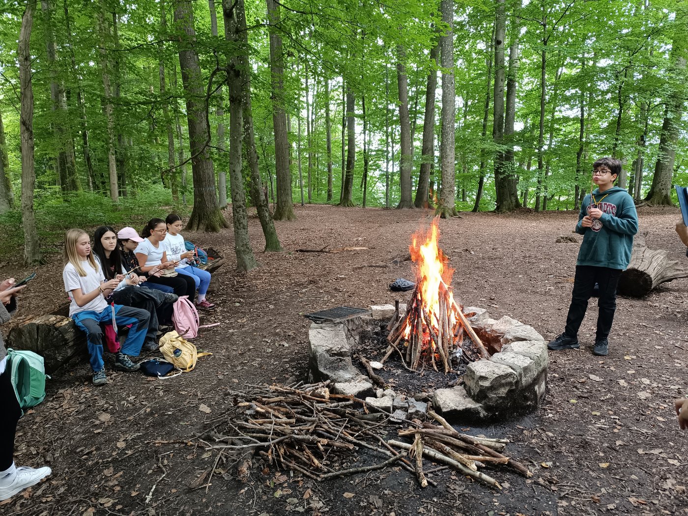 Dort wurde ein Feuer gemacht, Pizzateig um Stöcke gewickelt und als Schlangenbrot über dem Feuer gebacken. Daneben blieb viel Zeit für Spiele, Gespräche und das gemeinsame Zusammensein im Wald. So entstand ein abwechslungsreicher Vormittag, der Bewegung, Naturerlebnis und Gemeinschaft auf gelungene Weise verband.