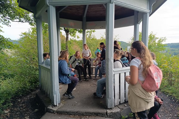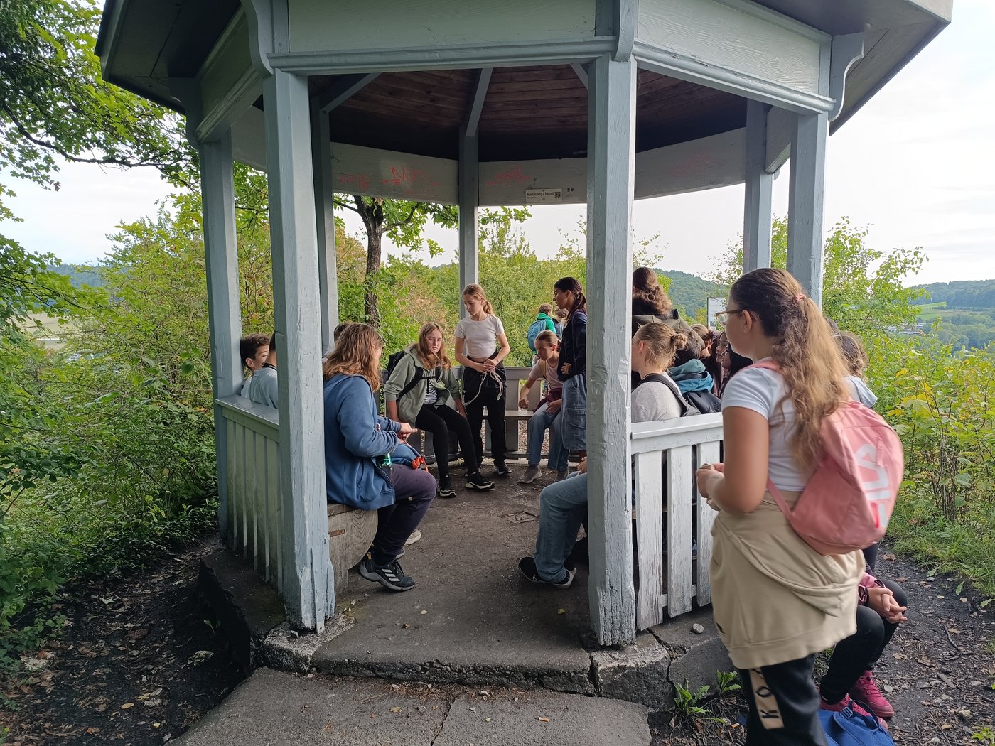 Oben angekommen, legten die Schüler:innen einen Halt beim Chänzeli ein und konnten dort die schöne Aussicht über Baden geniessen. Anschliessend ging es weiter zum nahegelegenen Brätelplatz.