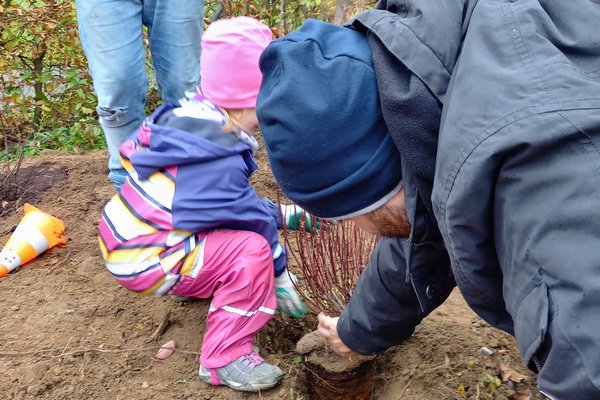 Die Schule hat mit einer Projekteingabe bei der Roger Federer Foundation überzeugt und CHF 10'000.- für die Gestaltung eines naturnahen und bewegungsfördernden Spielplatzes ergattert. Am 30. Oktober 2021 legten beim Kindergarten Landschreiber knapp fünfzig freiwillige Helfende, bestehend aus Lehrpersonen, Schulleitung, aktuellen und ehemaligen Kindergartenkindern, Eltern und Anwohnenden gemeinsam den Baustart für den neuen Spielplatz fest.