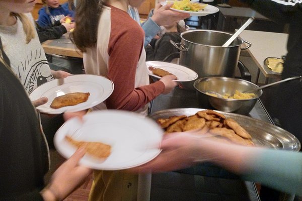 Zum Lagerleben gehört auch die Kinderschar, welche für ein angenehmes Zusammenleben im Haushalt mithelfen muss. Sei es beim Abwasch in der Küche, beim Abfall entsorgen, bei der Pflege der sanitären Anlagen, auch «Schiissitour» genannt: Jede Gruppe erledigte mit ihren Leitern die Hausarbeiten zügig und zuverlässig. So konnten die von den Klassen organisierten Abendunterhaltungen pünktlich beginnen und mit den feinen Desserts abgeschlossen werden.