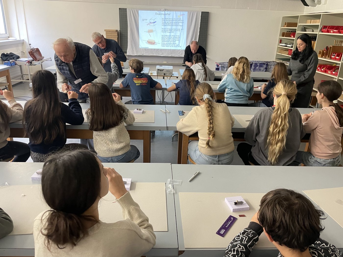 Im Rahmen des NMG-Themas Elektrizität nahmen alle sechssten Klassen an einem spannenden Workshop von Imagineering teil. Der Workshop umfasste vier Module, die jeweils eine Doppellektion dauerten. Nach einer kurzen Einführung und einem rund 15-minütigen Theorieteil stand vor allem das praktische Arbeiten im Mittelpunkt: Während etwa einer Stunde bauten, tüftelten und experimentierten die Kinder selbstständig. Mit grosser Neugier erforschten sie elektrische Stromkreise, testeten ihre eigenen Konstruktionen und erlebten viele spannende Aha-Momente.