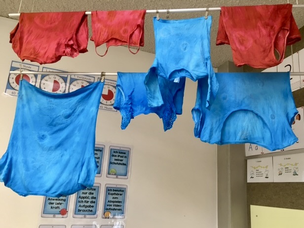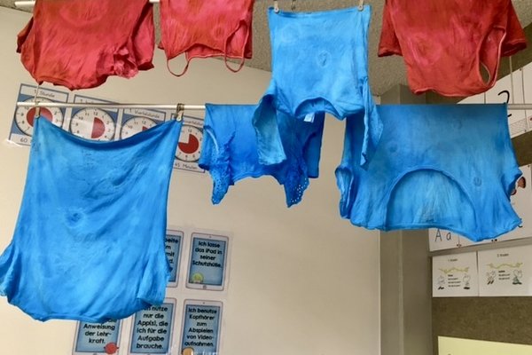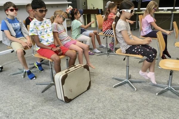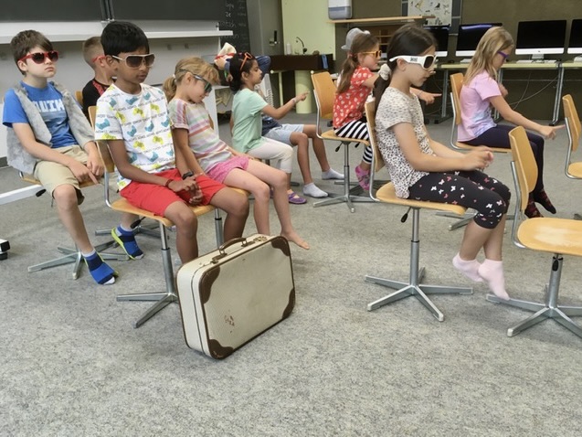 Vom Montag bis Donnerstag wurde in den Schulzimmern – bei sommerlicher Hitze – fleissig gezeichnet, gemalt, gebastelt, gespielt, erzählt, gesungen … aber auch oft gestaunt und gelacht. Ein Zimmer verwandelte sich vorübergehend in ein Flugzeug, ein anderes in eine Spiele-Fabrik, oder es entstand eine riesige, begehbare Zeitmaschine. Auch ein echtes Rentierfell oder eine antike Unterhose konnte man antreffen. Mit grossem Eifer sind die Schülerinnen und Schüler in spannende Themen eingetaucht und haben dabei auch Kinder aus anderen Klassen besser kennengelernt.