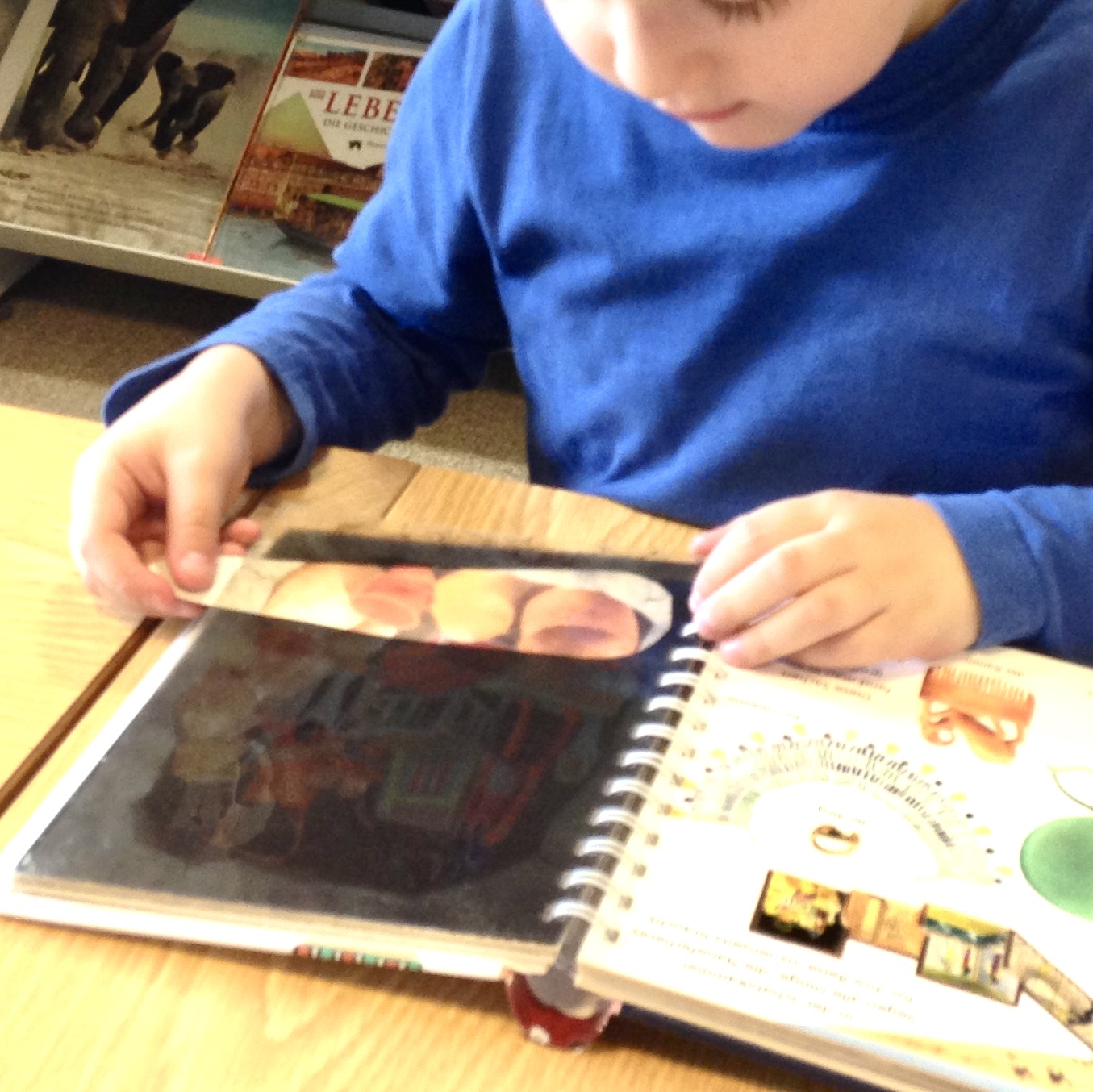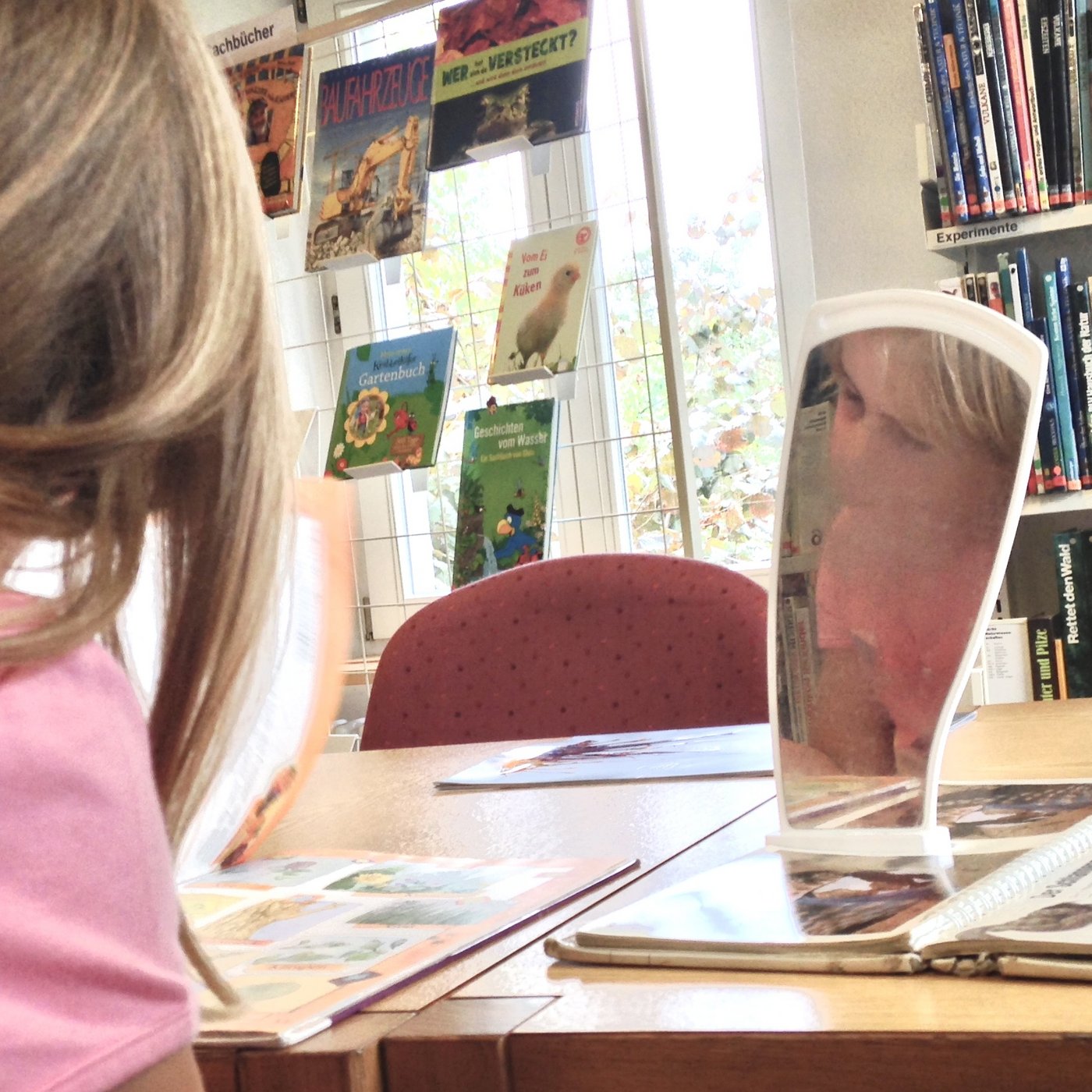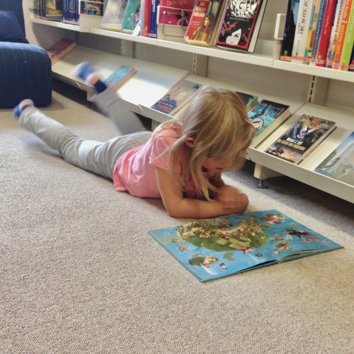 Die Kindergartenkinder können regelmässig die Dorfbibliothek an der Landstrasse 132 besuchen. Dort können sie etwas aus der bunten Welt der Bilder- und Sachbücher aus“lesen“, sich Geschichten zusammen“reimen" und diese einander erzählen. Dabei wird ihre Neugierde und Freude an Büchern, Geschichten und auch für das Lesen geweckt.