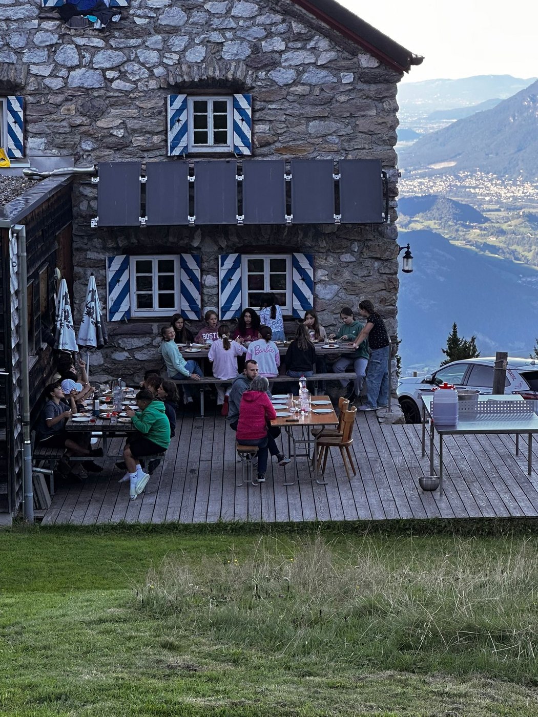 Nach einer eher stressigen Anreise mit viel Gepäck und anderen Schulklassen in vollen Zügen, wurden zuerst die Zimmer bezogen und anschliessend die Gegend um das Lagerhaus erkundet.