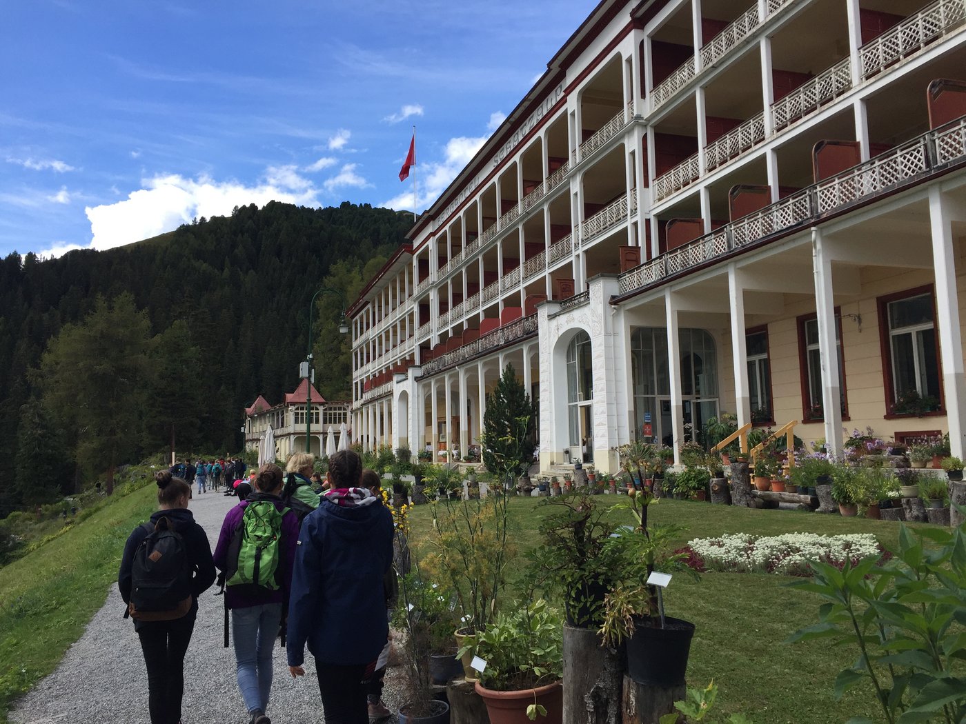 In Davos angekommen, haben wir uns in unserem gemütlichen Lagerhäuschen eingerichtet. Danach haben wir am Schwarzsee "Land-Arts" gemacht. Doch das war erst der Anfang von unserem tollen Programm. Wir haben einen Foto-OL gemacht, sind in einen Seilpark, haben das ehemalige Luxus-Sanatorium Schatzalp besucht und unternahmen eine wunderschöne Wanderung vom Weissfluhjoch über den Strelapass zum Gotschnagrat.