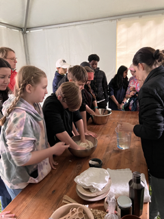 Am Donnerstag sind wir nach dem Frühstück zum Schloss Hallwyl gewandert und haben dort zu Mittag gegessen. Danach machten wir einen Workshop über das Essen im Mittelalter, hauptsächlich über Brot und wie es gebacken wurde sowie über die Bedeutung, welche die Menschen dem Brot gaben. Wir durften ausprobieren, wie man Getreide mahlte und welche Maschinen dafür benutzt wurden. Wir durften sogar selber backen und später unser Brot essen. Zurück fuhren wir dann mit dem Schiff bis fast zur Jugi. Danach hatten wir etwas Freizeit, bevor es eine Disco gab.