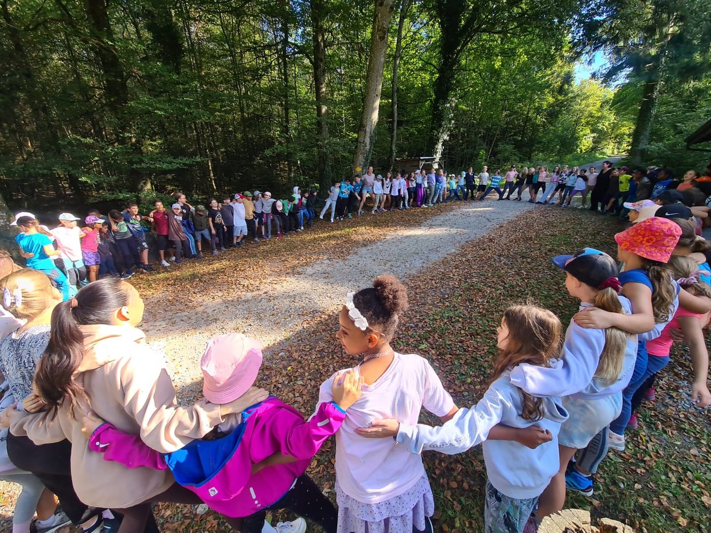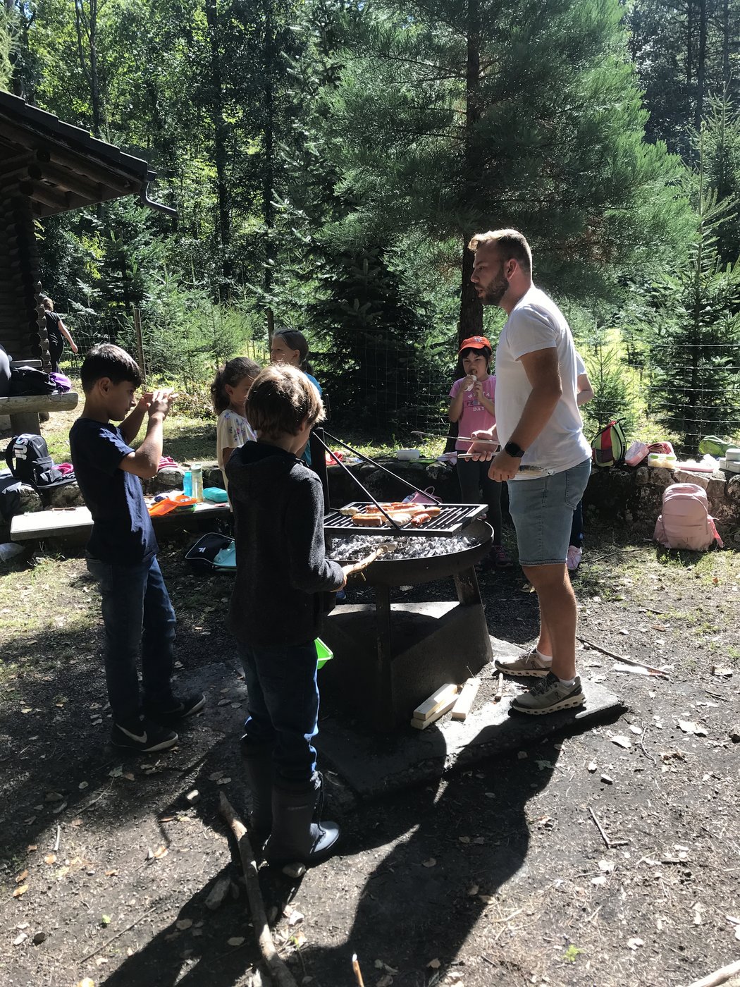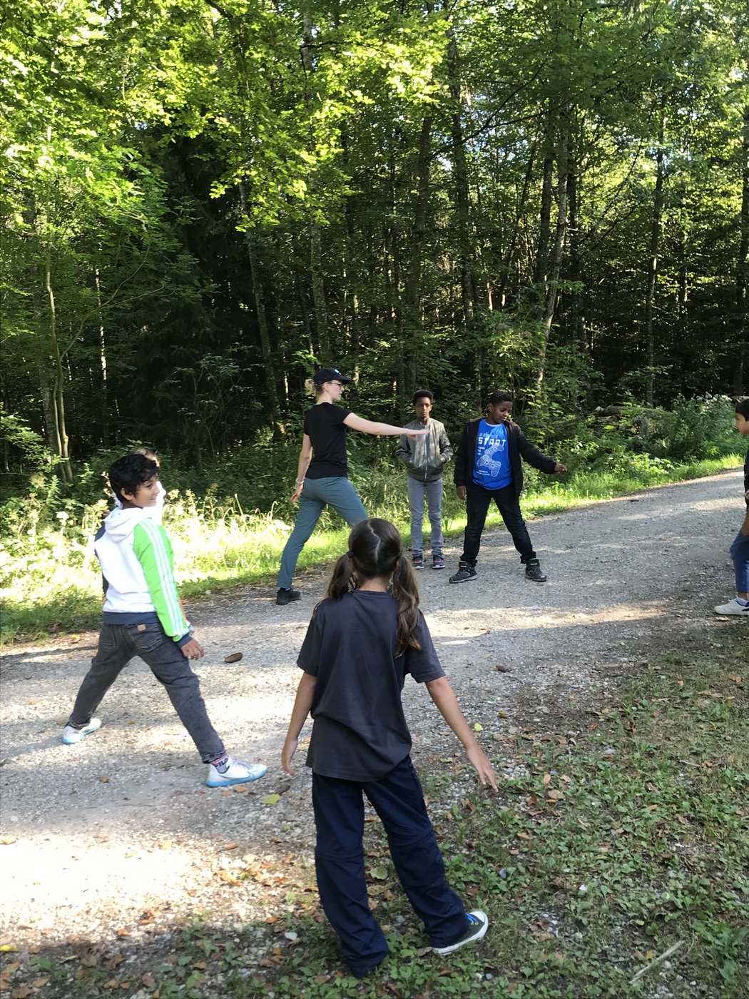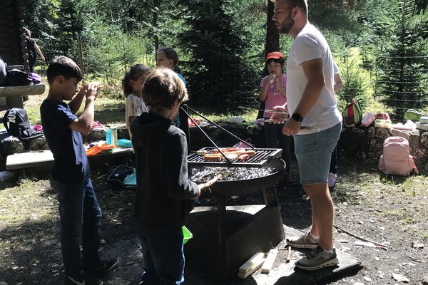 Nachdem gestaffelt zum Forsthaus gewandert wurde, begrüssten sich die Schülerinnen und Schüler mit einem gemeinsamen Kreisspiel. Danach boten alle beteiligten Lehrpersonen abwechslungsreiche und lustige Posten an, an denen man sich vergnügen konnte: Tannzapfenweitwurf, Waldmandalas erstellen, Bäume blind ertasten, Hütten bauen, Kreisspiele, Schatzsuche, Waldmemory. Dabei wurde viel gelacht, und neue Freundschaften konnten geschlossen werden. Zwischendurch durften die Klassen an der Feuerstelle ihre Würste bräteln und Zmittag essen.