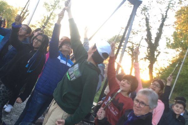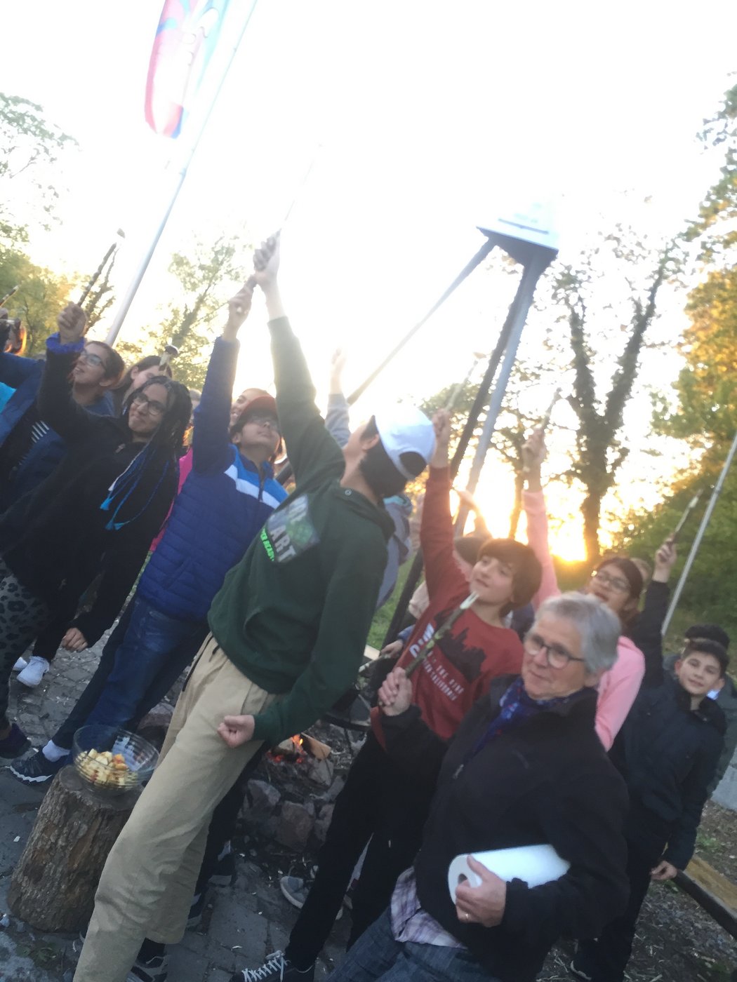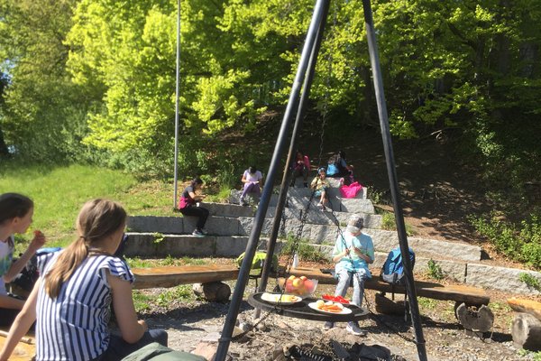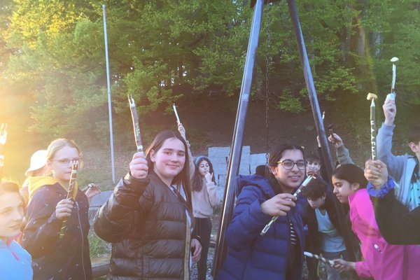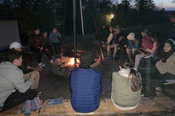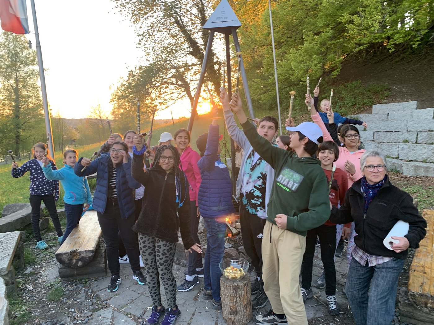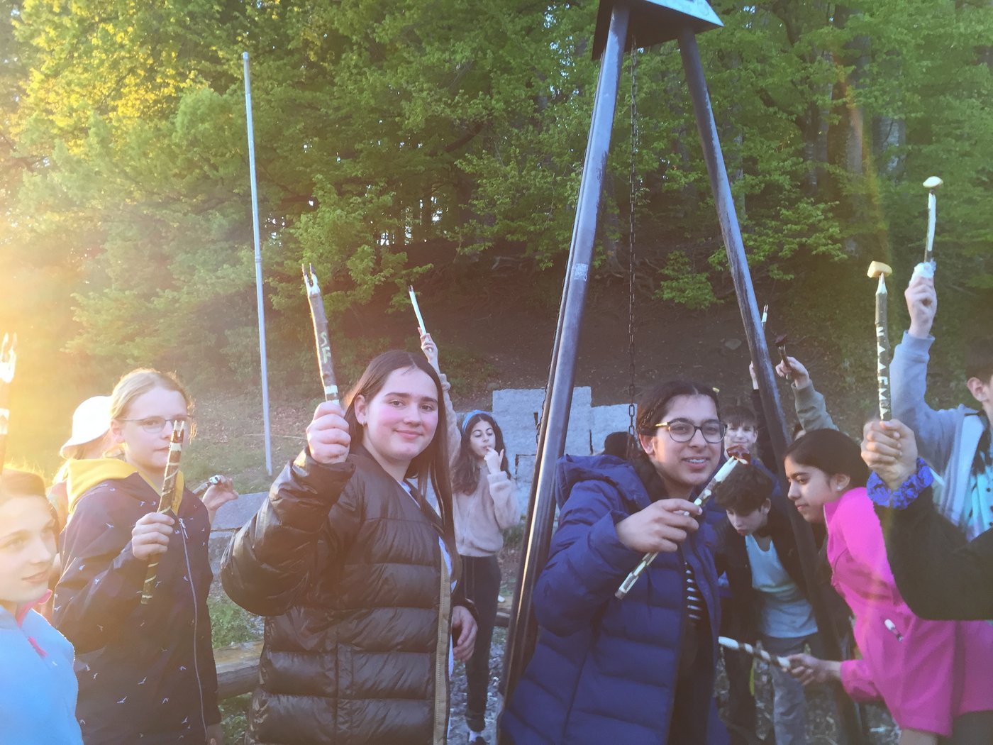Danach sassen wir am Lagerfeuer und hatten ein Schokofondue mit Äpfeln und Marshmallows. Die Äpfel und Marshmallows haben wir mit unseren selbst geschnitzten Gabeln aufgespiesst. Danach haben viele Wahrheit oder Pflicht gespielt. Schliesslich waren wir alle müde und machten uns bettfertig.