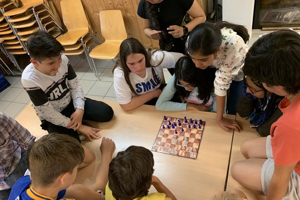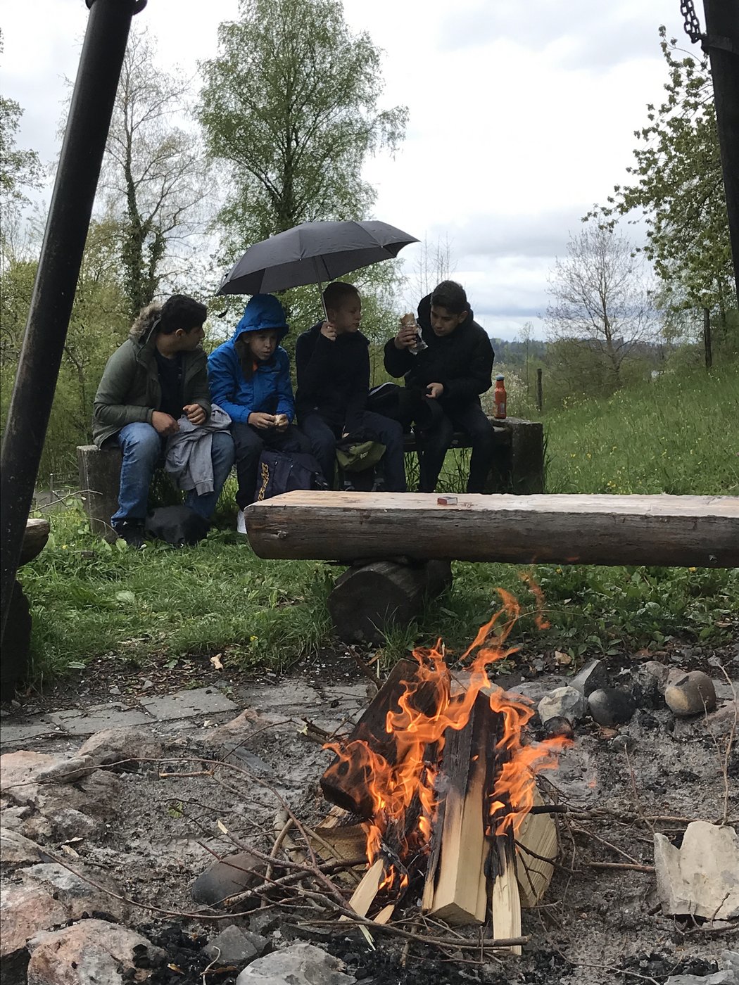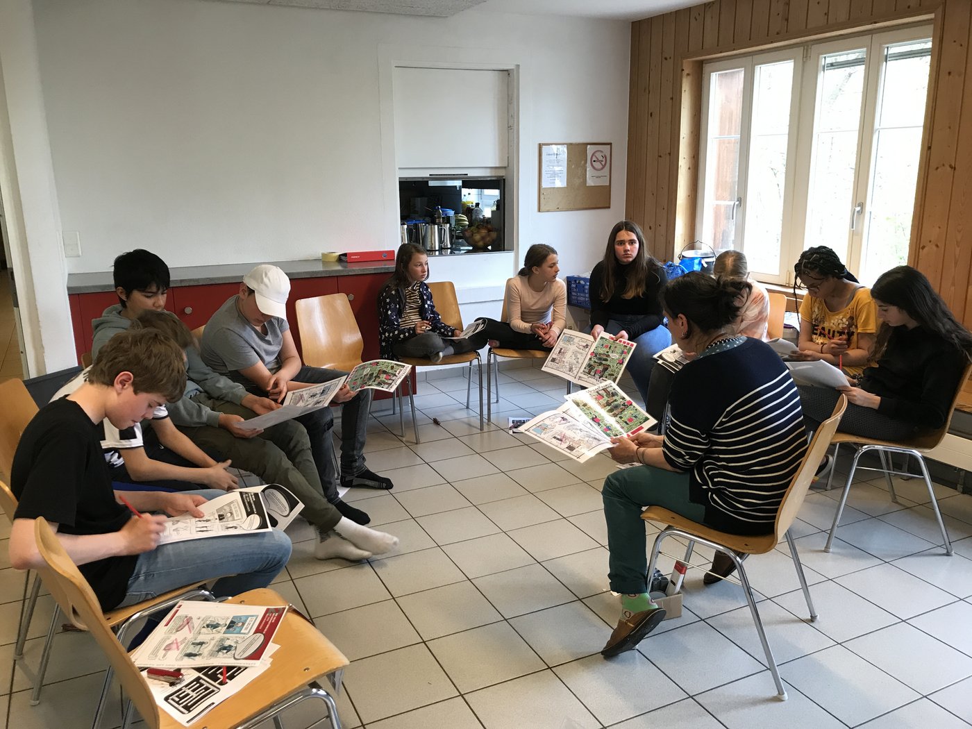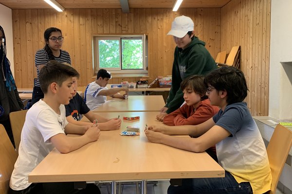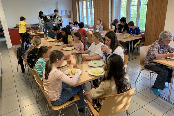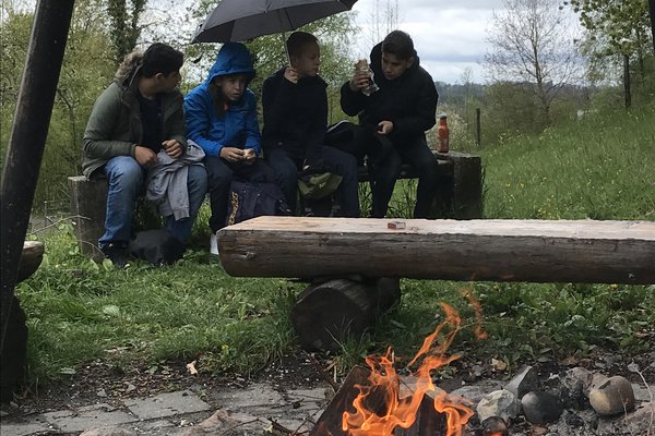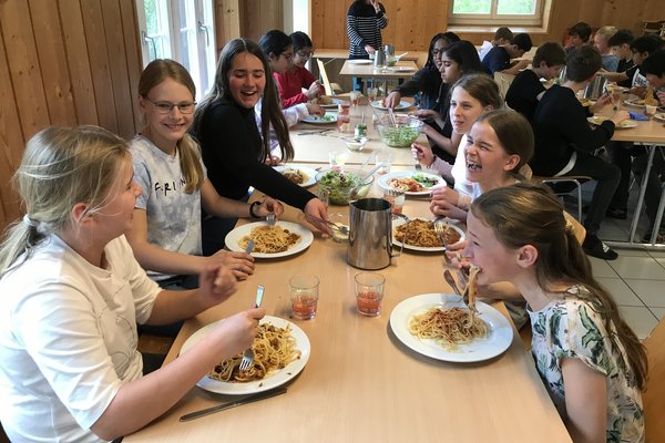 Heute sind wir zum ersten Mal in einem Lagerhaus aufgestanden. Leider hat uns das Wetter nicht besonders schön begrüsst, denn es regnete, regnete und regnete. Frau Fong hatte uns gestern gesagt, dass, wenn es sehr stark regnen würde, wir keine Wanderung machen, sondern ins Hallenbad gehen würden. Und - naja -…. Am Morgen gingen wir nach unten und versammelten uns an den Essenstischen. Silvio, David, Julian, Fabian und Nikola waren als erstes unten, für etwa eine Stunde. Als wir begannen, das Frühstück zu essen, verkündete Frau Fong, dass wir ins Hallenbad gehen. Wir packten unsere Sachen und liefen zum Bahnhof. Wir machten eine kleine Pause an einem Kiosk. Wir gingen mit dem Bus zum Hallenbad, das uns eine guten Eindruck machte. Als wir das Hallenbad betraten, gab es ein Highlight: die Wasserrutsche war richtig toll. Dann haben wir etwas am Rand des Hallenbads Mittag gegessen. Danach sind wir eine Stunde in den Wald zu einem Grillplatz gelaufen. Dort hat uns Frau Doppler Weiteres zum Schnitzen gezeigt. Es gab auch eine kleine Strömung, die eine ruhige Umgebung erzeugte. Nach etwa 80 Minuten sind wir wieder eine Stunde zurück zum Lagerhaus gewandert. Zwischendurch hatte Lia H. eine Idee: Sie hüpfte durch alle Pfützen - egal wie gross, egal wie klein - sie hatte schlussendlich komplett nasse Hosen und Schuhe. Im Lagerhaus ruhten wir uns sehr aus. Um 17:00 Uhr fingen wir an, die Ämtlis zu erledigen. Zum Abendessen gab es leckere Hamburgers und Pommes. Das Abendprogramm war besonders spektakulär, weil wir, wie im Casino, Poker gespielt haben. Zwei Stunden lang haben wir nur Glücksspiele gesuchtet. Heute war die «Gutenachtsgeschichte» besonders langweilig.