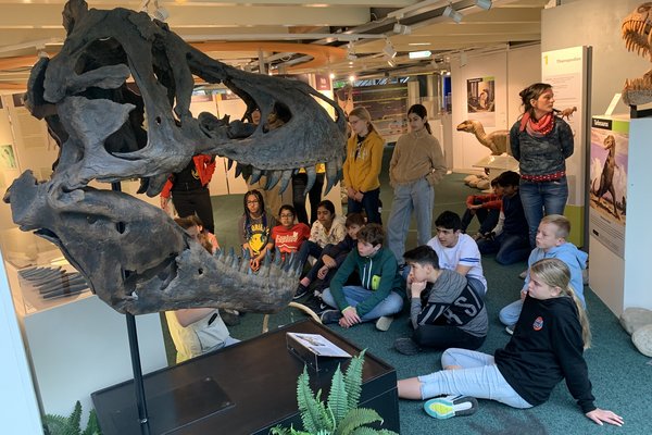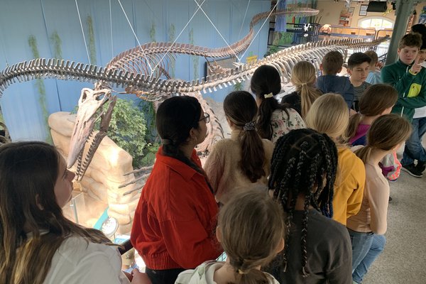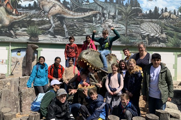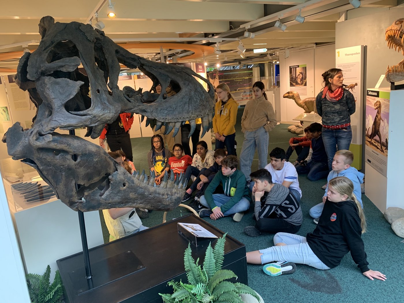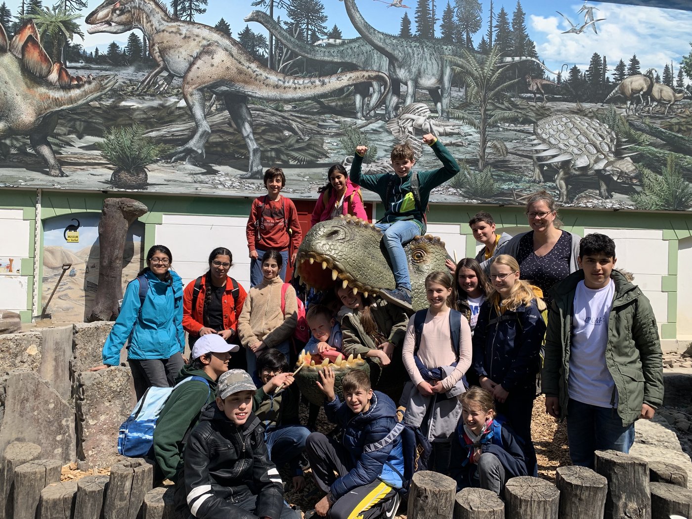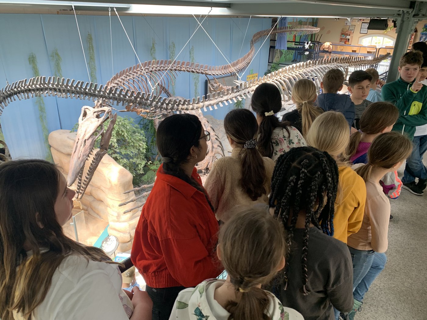 Heute fuhren wir mit dem Zug zum Dinosauriermuseum. Im Dinosauriermuseum hatten wir eine Führung mit einer Frau. Die Frau hat uns sehr viel über Dinosaurier erzählt und wir durften sogar echte Dinosaurierskelette anschauen. Wir haben draussen Mittag gegessen. Draussen hatte es einen Spielplatz mit einer Rutsche, Karussell, Dinos zum Reinklettern,... Im Lagerhaus haben wir noch 15 Minuten am Schnitzdossier gearbeitet, und dann sind wir raus gegangen, um zu schnitzen. Zum Abendessen gab es Reis Casimir. Am Abend hatten wir ein Abendprogramm, wir hatten viele Spiele gespielt.
