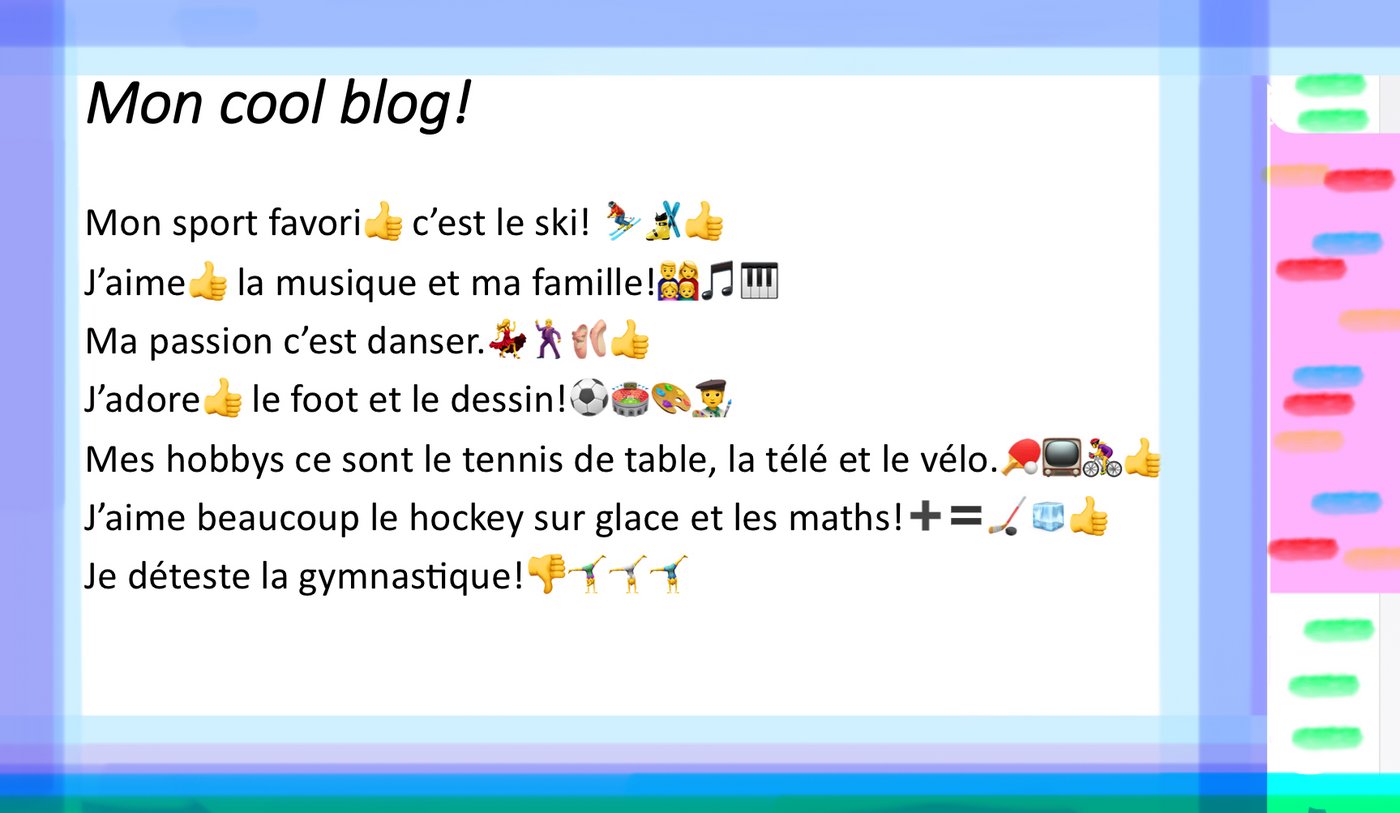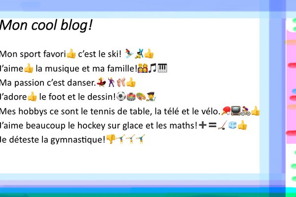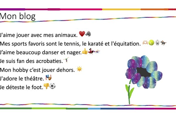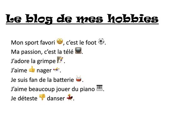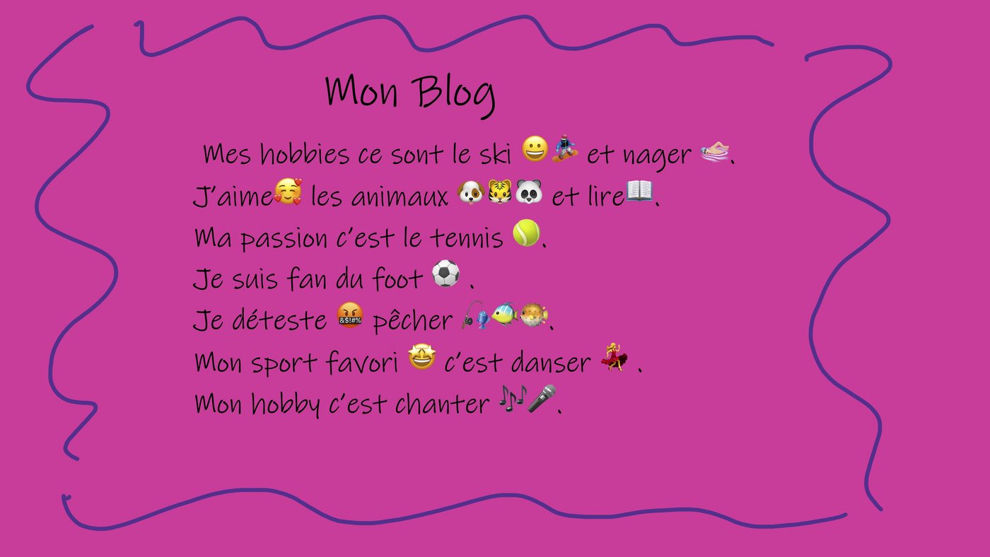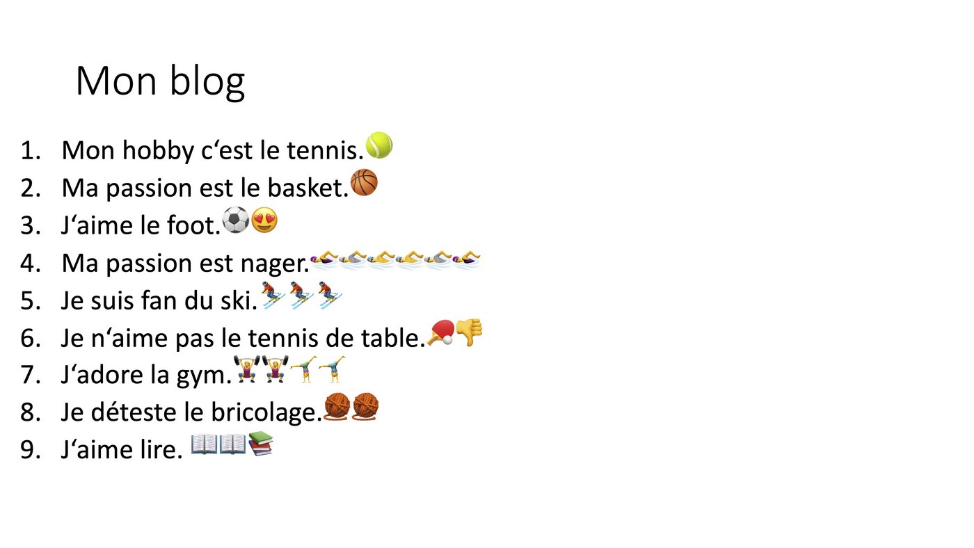 In den im Französischunterricht geschriebenen Blogbeiträgen berichten die Schülerinnen und Schüler der 5b und 5e über ihre liebsten Freizeitbeschäftigungen.