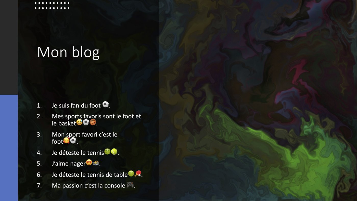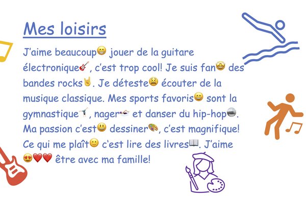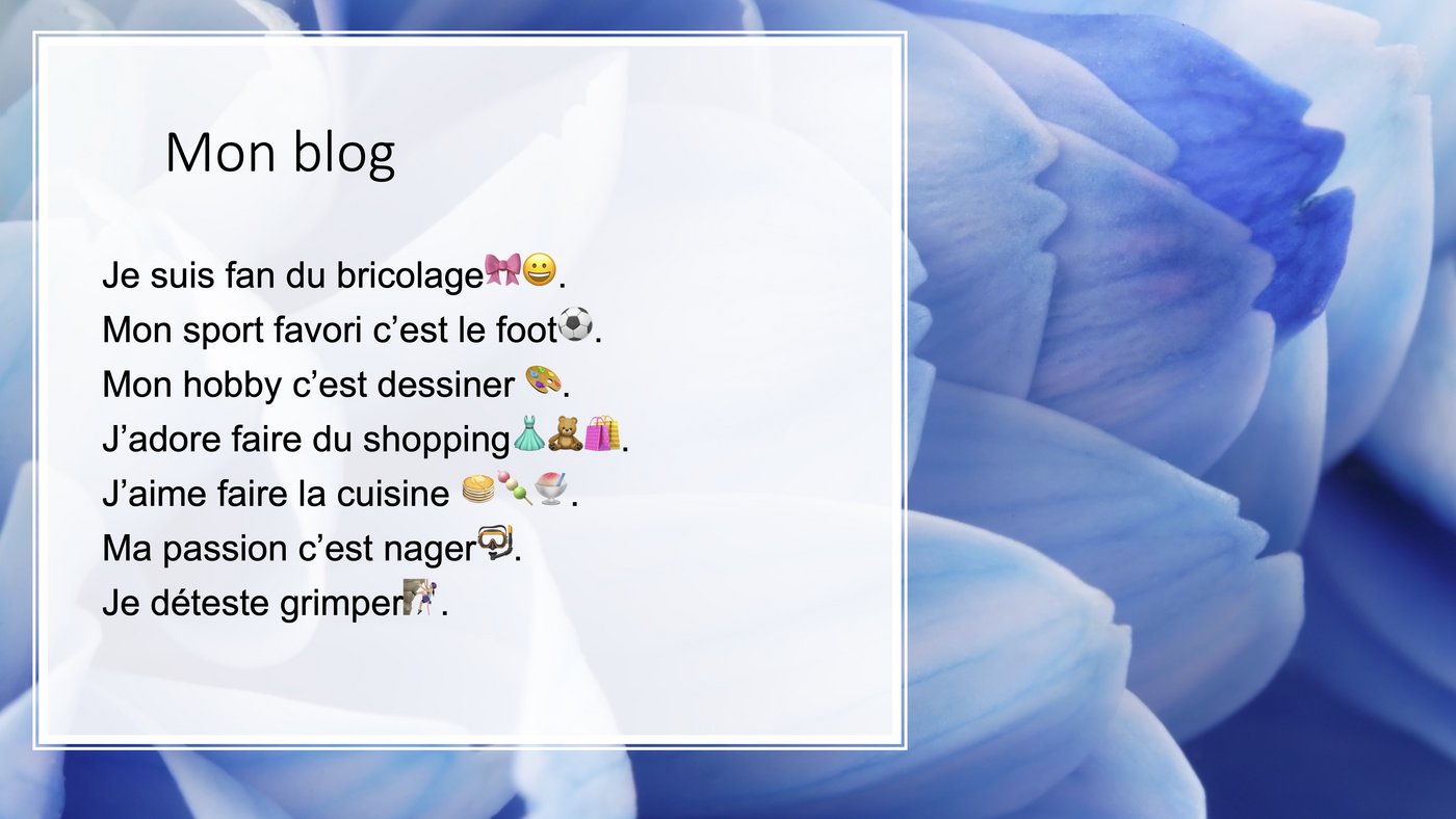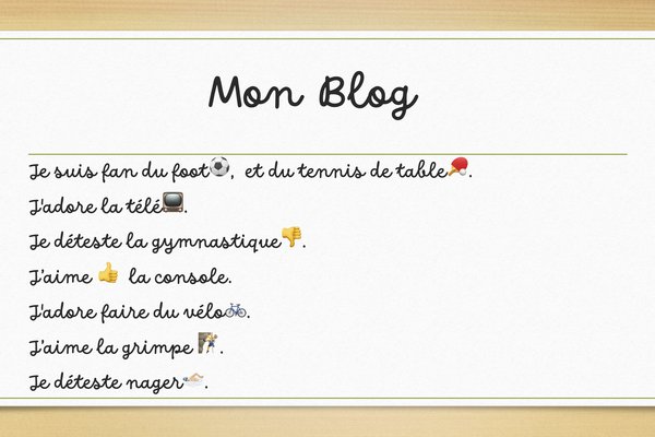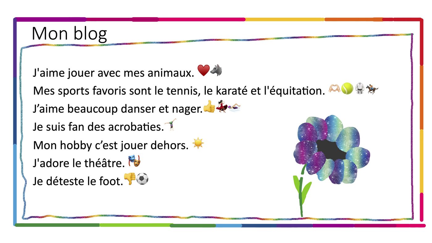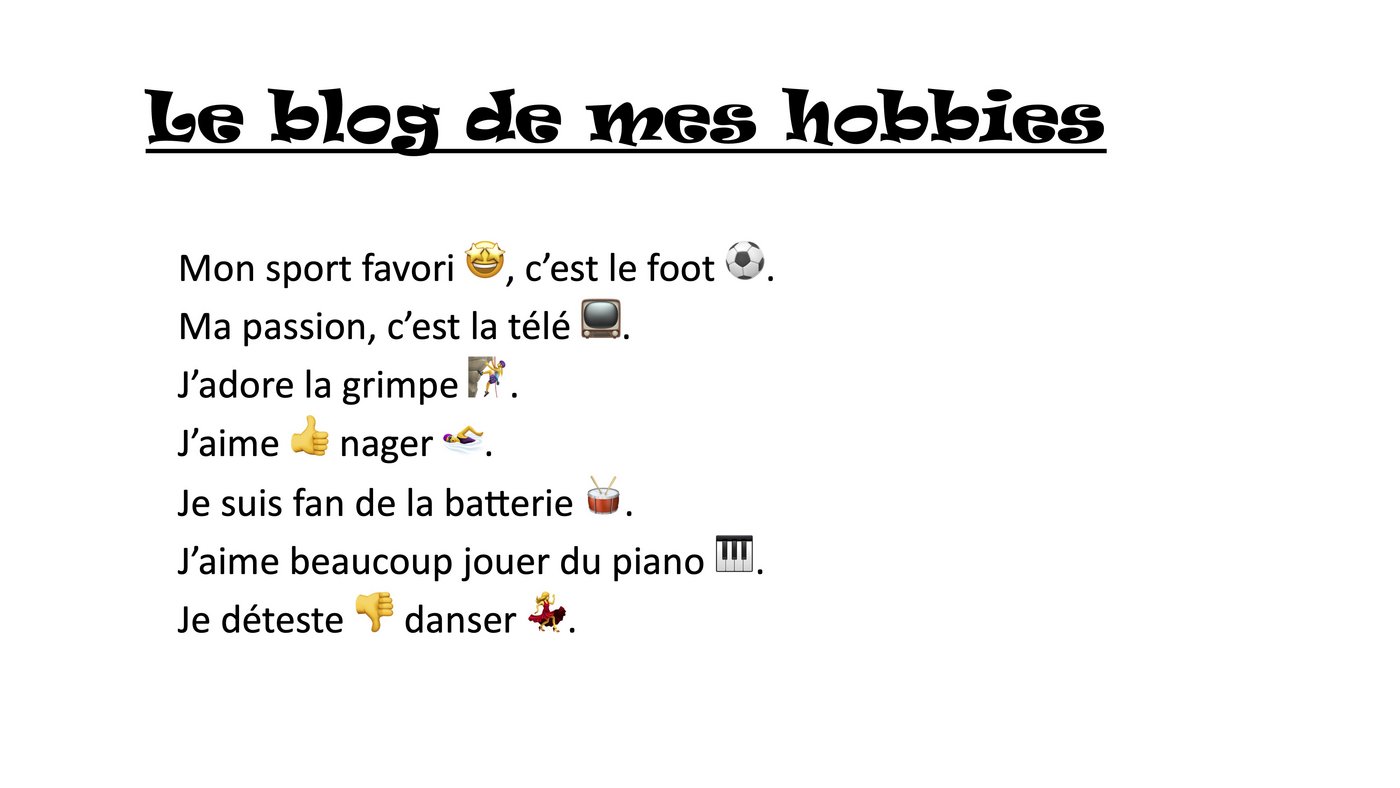 In den im Französischunterricht geschriebenen Blogbeiträgen berichten die Schülerinnen und Schüler der 5b und 5e über ihre liebsten Freizeitbeschäftigungen.