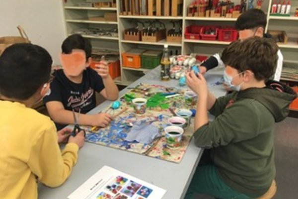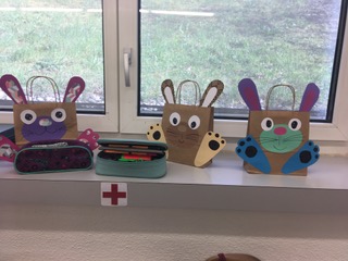 Im Werkraum standen verschiedene Posten zum Thema „Ostern“ bereit. Neben dem traditionellen Ostereierfärben konnten die Kinder Osterhasen in verschiedenen Variationen basteln: Buchzeichen, Aufstellhasen, Osterhasentaschen und sogar Osterhasenkekse sorgten für viel Freude unter der 5C. Leider verging die Zeit wie im Flug und es konnte nicht alles ausprobiert werden. Trotzdem sind viele tolle Bastelarbeiten entstanden und zumindest einen Osterhasenkeks konnte jedes Kind am Ende des Tages mit nach Hause nehmen. Dass der restliche Teig noch für den einen oder anderen Extrahasen reichte, sorgte auch im Lehrerteam für gute Laune.