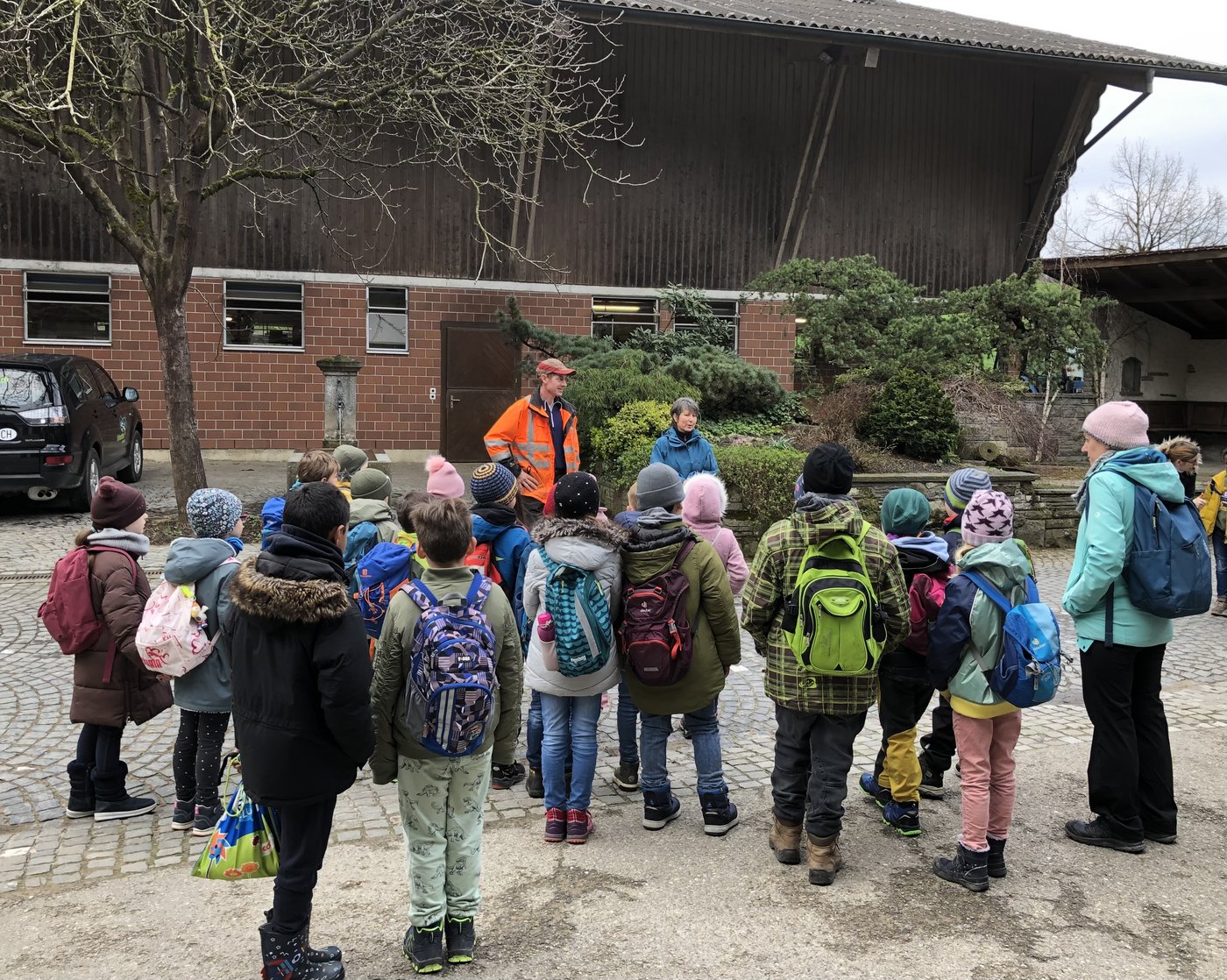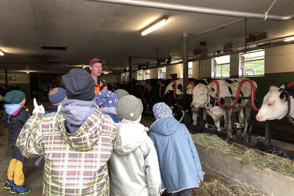 Am Montagmorgen, 3. April, durften die beiden Klassen P2c und P2d den Eichmatthof in der Nähe des Weilers Hertenstein besuchen. Armin und Domenica Schmid begrüssten uns freundlich.