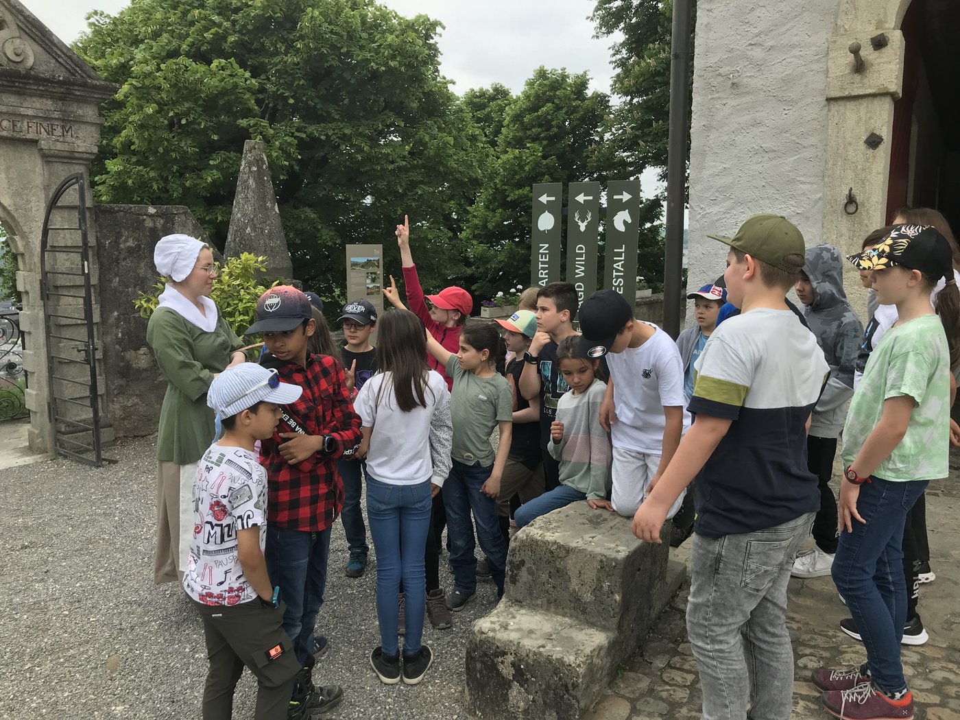 Die Klasse P4d ging am 23. Mai 2023 zum Schloss Wildegg. Dort kam eine Magd und zeigte uns ihr Leben im Schloss. Anschliessend assen wir unser Mittagessen und spielten auf dem Spielplatz beim Schloss. Wir wanderten mit vollem Magen weiter zum Steinbruch Schümel. Dort durften wir Fossilien suchen. Als wir bei den Ausgrabungen ware,n kam plötzlich ein riesiges Gewitter und hat alles mega rutschig gemacht. Ein paar Kinder haben Angst bekommen. Zum Glück haben wir schnell unsere Sachen gepackt und sind losgelaufen. Hier angekommen, wollten wir so schnell wie möglich nach Hause.