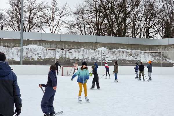 Ob Schlittschuhprofis oder nicht – die P5d gab Gas und genoss einen Halbtag auf dem Eis. Schöne Nebeneffekte: Stärkung des Klassengeists, Zeit ausserhalb des Schulzimmers verbringen, rosige Wangen, höher schlagende Kinderherzen und Spassfaktor hoch 10.