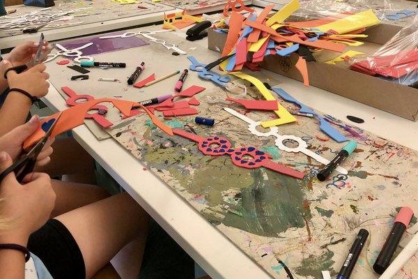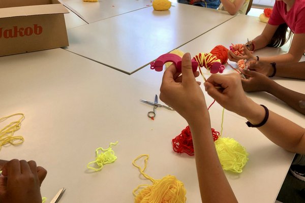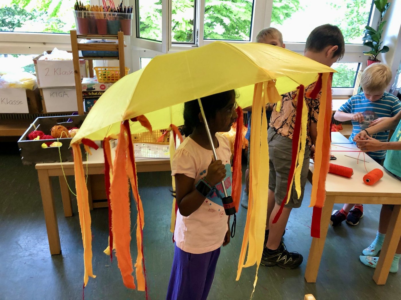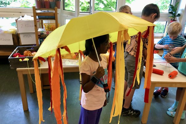 In verschiedenen Gruppen wurde während der Projektwoche das Lied und der Tanz eingeübt sowie die verschiedenen Utensilien für den Umzug gebastelt.