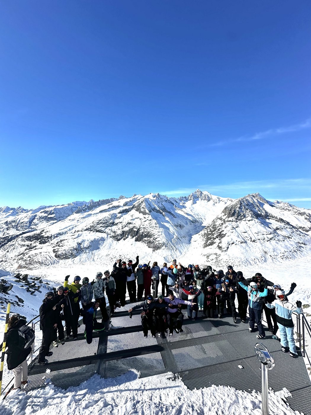 Aufgrund der einmalig hohen Anmeldezahl (27 mit Skis, 33 mit Snowboards) mussten sogar externe Unterbringungsmöglichkeiten hinzugezogen werden. Nach der Ankunft und dem Zimmerbezug begab sich die Gruppe in die Aletscharena, wo sie Ausrüstung und Können testete. Eine besondere Herausforderung an das junge Leiterteam stellten die vielen Jugendlichen dar, die sich zum ersten Mal auf Skis oder Snowboards versuchten und mit dem Verhalten auf der Piste wenig vertraut waren.