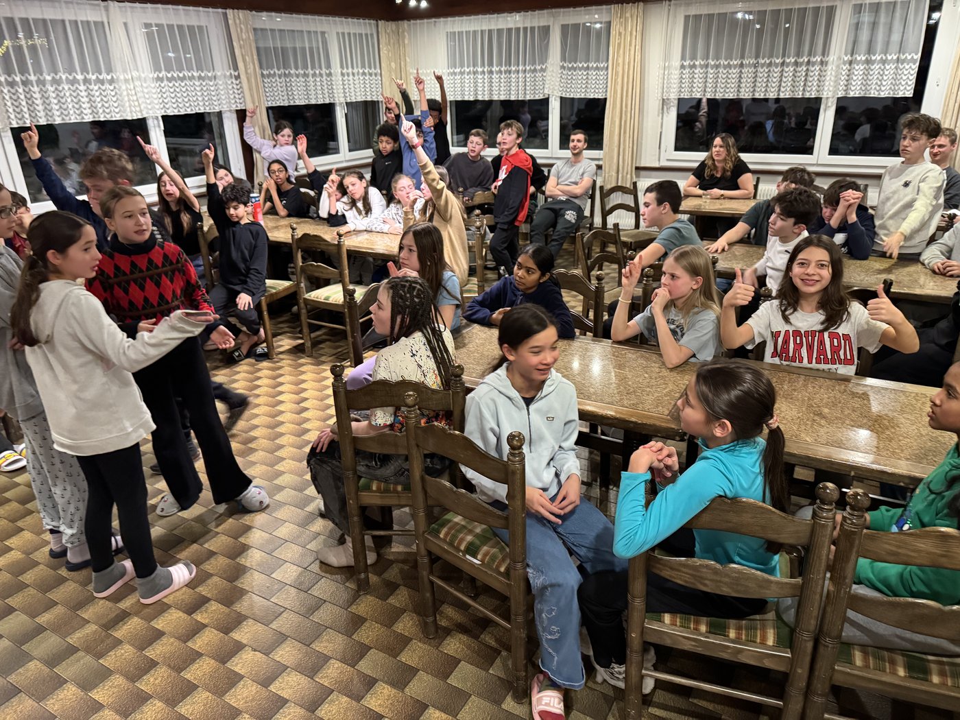 Nach anstrengenden Sportaktivitäten darf das leibliche Wohl natürlich auch nicht zu kurz kommen. So verwöhnten uns Frau Weibel, Frau Baschnagel und Frau Burger mit feinen Menus und hausgemachten Desserts. Die Küchenmannschaft durfte sich über den Applaus der Teilnehmenden immer wieder freuen. Der schönste Dank von uns allen waren aber sicherlich die leergeputzten Teller und Schüsseln. Nachdem auch die Energydrink-Affäre und andere Sorgen am letzten Abend aufgeklärt waren, konnten sich alle auf den letzten Schneetag mit Pommes zum Zmittag in der «Morenia» und auf die Heimfahrt freuen.