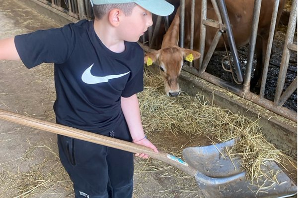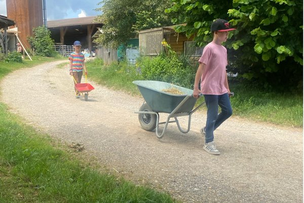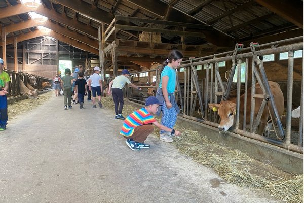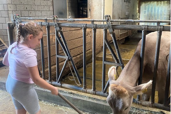 Die Kinde der P2c hatten das Vergnügen, auf dem Bauernhof im Hafen mitzuhelfen. Sie versorgten die Kühe mit viel Liebe und Heu. Am Ende gab es noch leckere Rohmilch und feine, selbstgepflückte Kirschen. Am Ende gingen alle mit einem Lächeln und vollen Magen wieder nach Hause - es «Muhtastisch»!