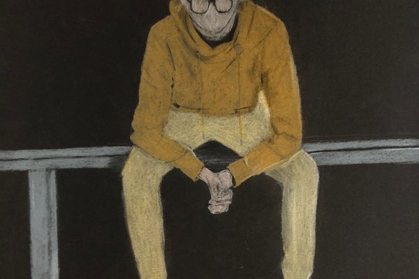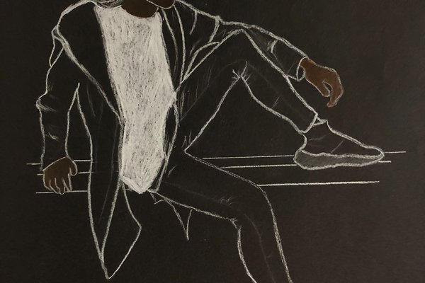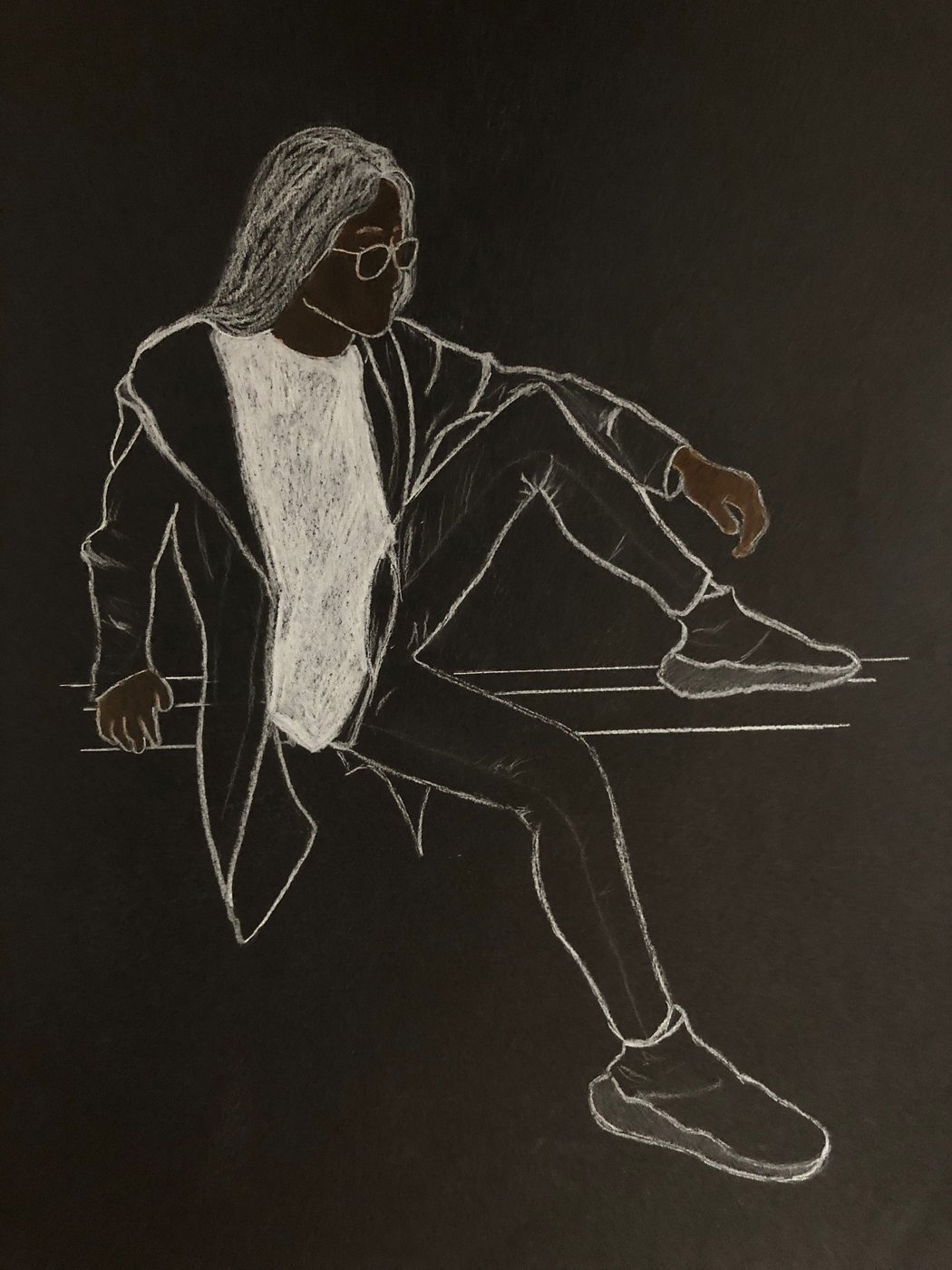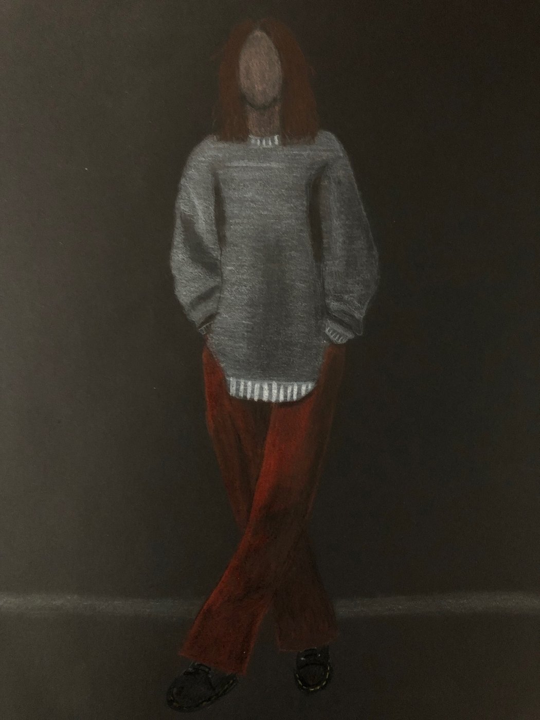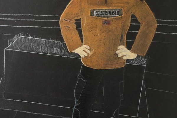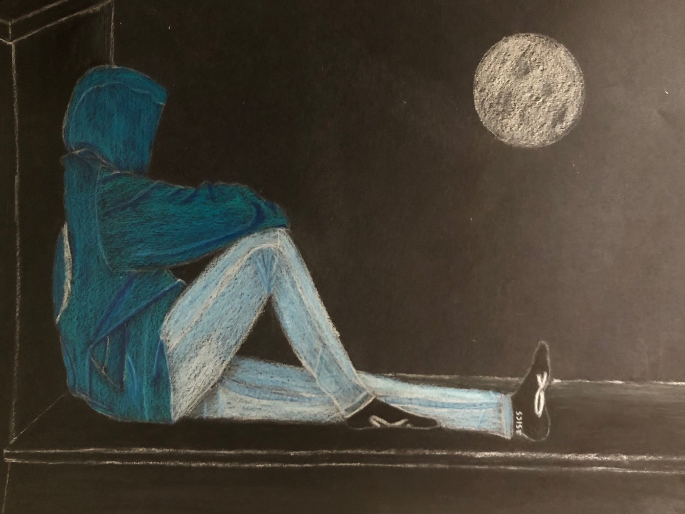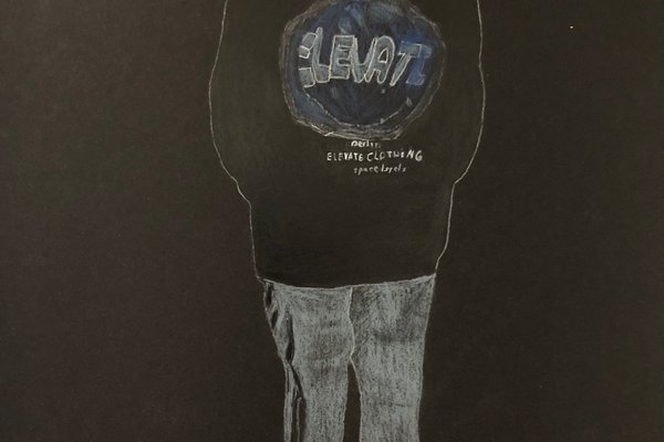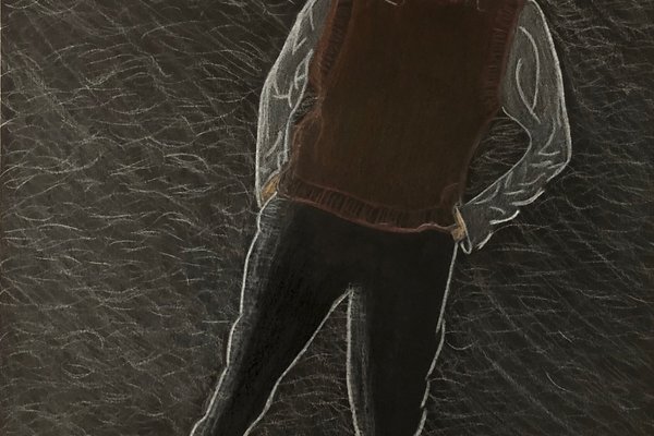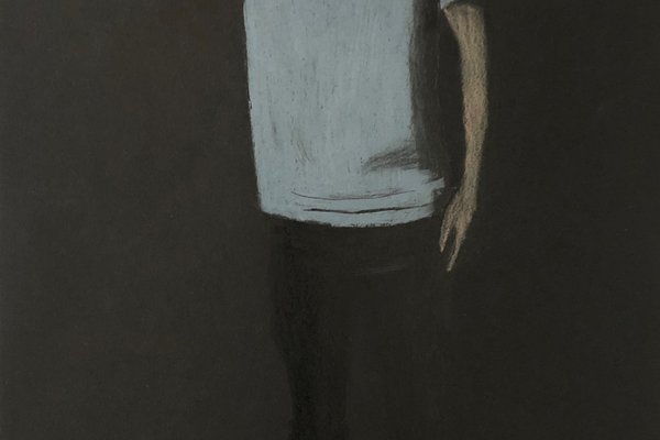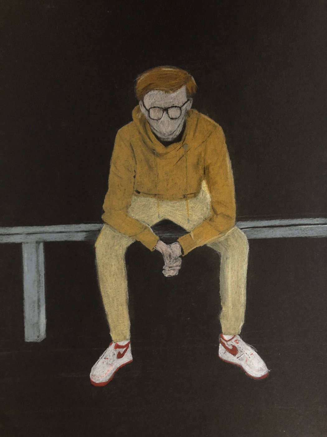 Die Schülerinnen und Schüler der B3ab haben sich gegenseitig fotografiert und danach ihre Fotografie zeichnerisch mit Farbstift auf schwarzem Papier umgesetzt.