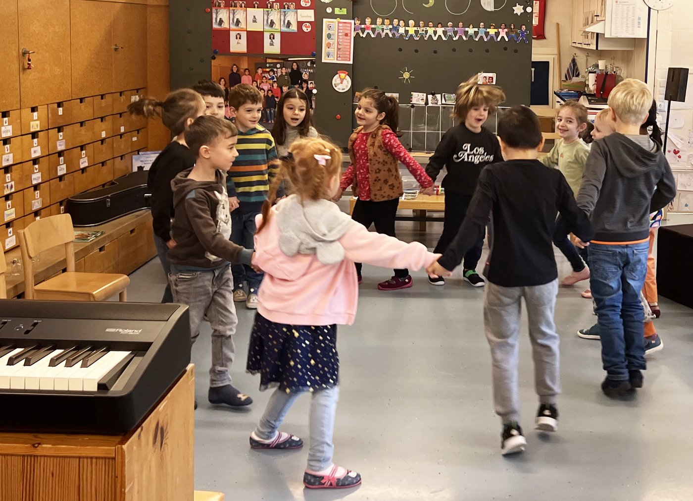 Mit Hilfe des Frühlingssongs "Früeligstanz" von Andrew Bond lernten die Kinder singend und tanzend aktuelle Frühlingsblumen kennen.