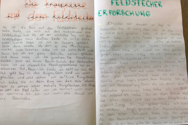 Nach jeder Unterrichtssequenz trugen die Schülerinnen und Schüler ihre neu gewonnenen Erlebnisse und Erkenntnisse sorgfältig in ihr Forscherheft ein.